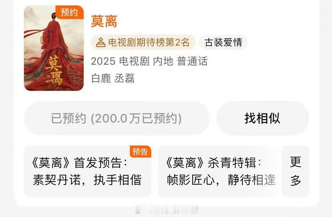 莫离预约量破200万白鹿丞磊莫离预约量破200万白鹿丞磊莫离预约量破200万