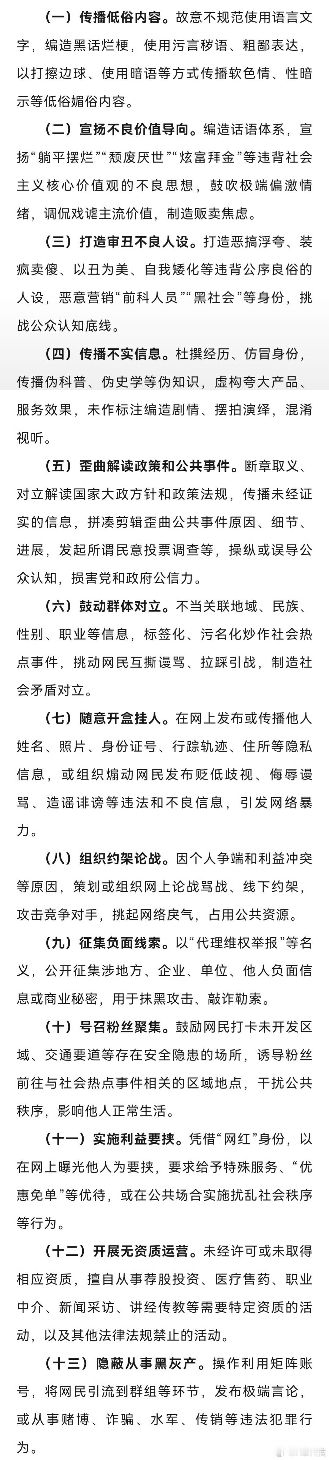 来咯来咯,支持加强对网络名人、自媒体的管理,这下都要谨慎发言了,要不然就是一波带走,看了下条例很全面,执行吧网络名人账号行为负面清单