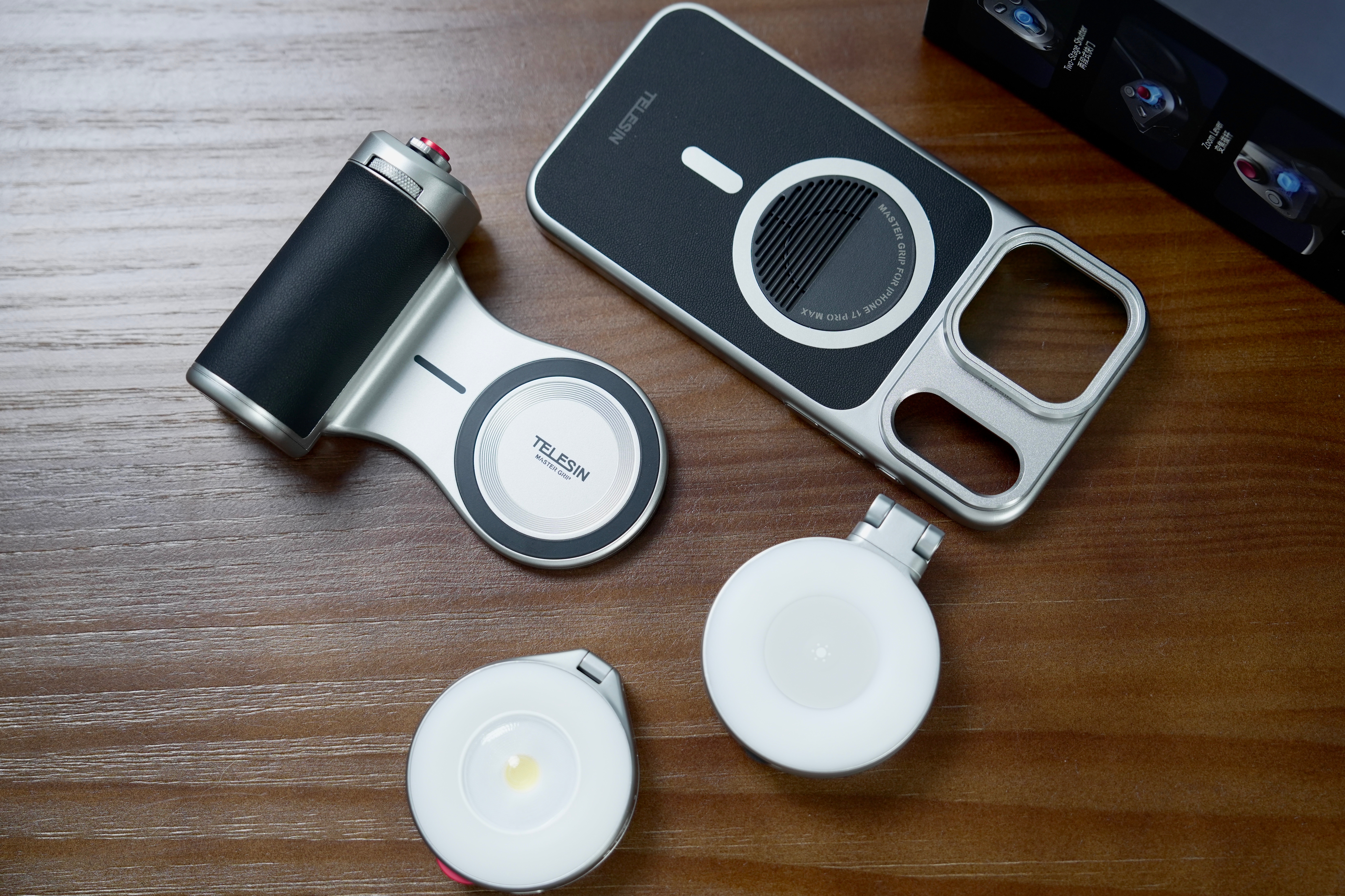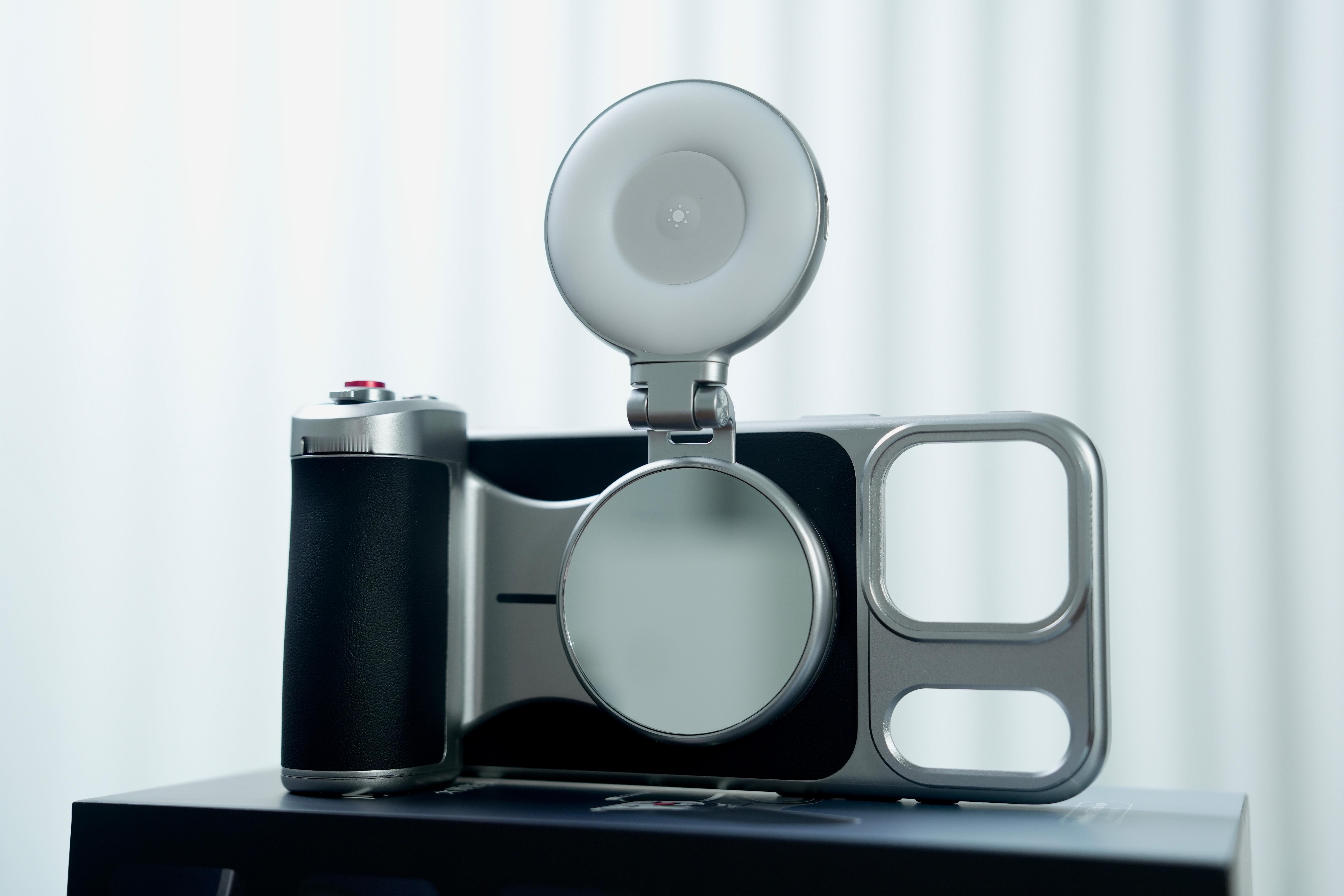 iPhone一直缺个好用的摄影手柄,现在泰迅这套装备把这事补齐了。套装里是一个带石墨烯散热的手机壳,能磁吸手柄和补光灯,还能滑入UV镜保护镜头。手柄本身握感扎实,顶部有滚轮和实体按键,配合专属APP调参数、换滤镜很方便,底部还能给手机应急充电,不用时也能当支架。补光灯能磁吸在手柄上,亮度可调,拍人像时补光很自然。它家还单独出了一个闪光灯,除了补光还能遥控手机拍摄。这套东西已进苹果店,也符合登机标准。如果你常用iPhone拍照录像,这套扩展配件确实能提升不少可玩性和实用性。泰迅摄影套装iphone17