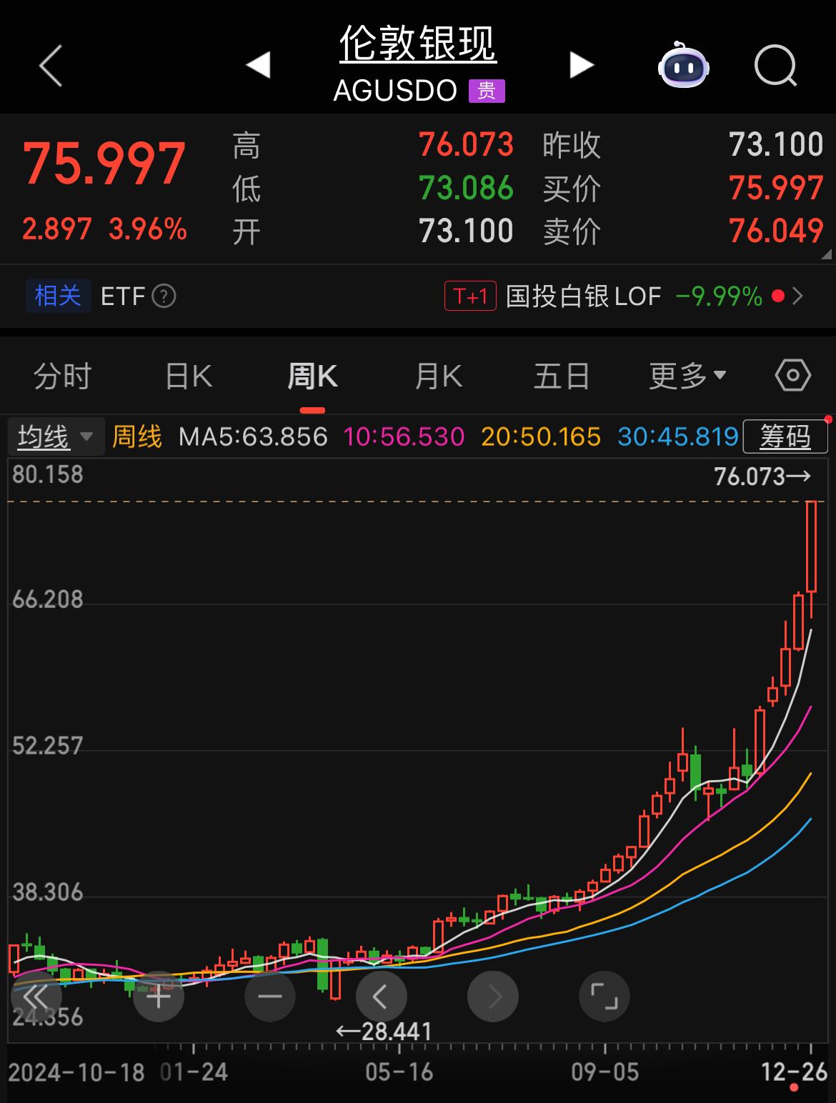 现货白银盘中突破76美元/盎司,年内涨幅超过160%,妥妥的当红炸子鸡! 因其盘子大小只有黄金的十分之一,所以波动性较大。黄金年内涨幅也超过70%。 随着白银价格持续走高,国投白银LOF的场内溢价将减少,所以还在里面的朋友们心情可以放松一下。