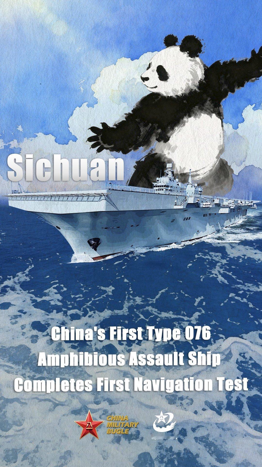 四川舰下水一周年2024年12月27日,我国自主研制建造的076两栖攻击舰首舰四川舰下水,舷号为“51”。