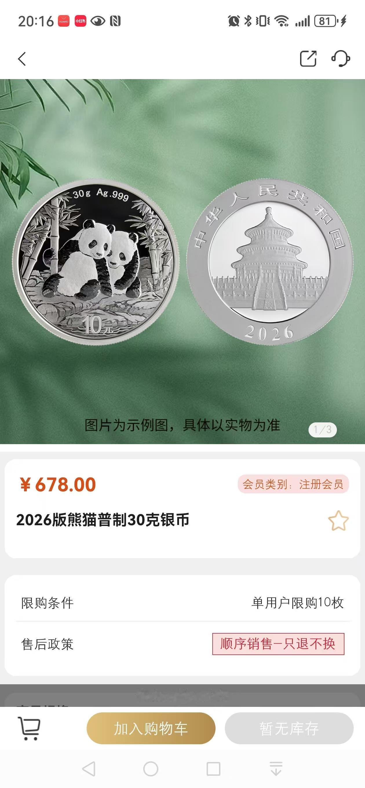 熊猫银币真是一天一价,还库存缺货了! 今天打开金币云商,30克熊猫银币已经涨到678元。 9月份买的熊猫币才368,短短三个月上涨了310,这个涨幅真是出乎意料。 当时买这几枚,只是预料到会涨,试探性买入。没想到涨这样快,现在简直不敢下手了。 从现在这价格看,当时觉得很贵的西南财大建校100周年的纪念币,现在也很便宜了。