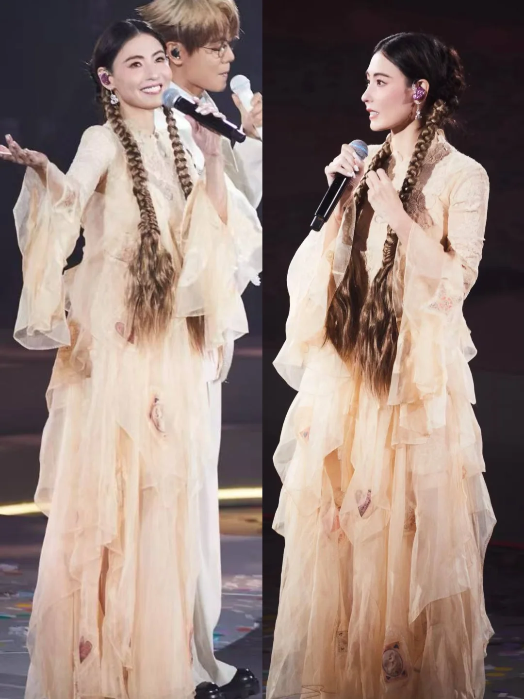 简直了!张柏芝去看林家谦演唱会的穿搭也太会了吧🥳 彩排时的迷彩上衣,瞬间把人拉回千禧年,那种随性又带点复古的感觉,太有内味儿了~ 一到演唱会上,一袭仙气飘飘的造型,妥妥的仙女下凡,美到失语! 姐姐这穿搭功力,还有这状态,真的瑞斯拜👍