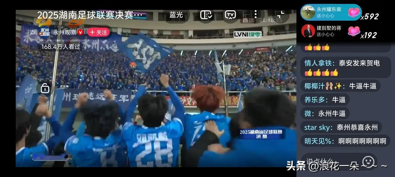 这排面可以呀! 湖南民间足球搞得也不错啊!就差上央视转播了,如果说苏超排第一,湘超怎么也得排个第二吧,你看看黑马永州队多牛逼啊一路黑到底。按理说长沙队怎么也得搞个冠军吧作为省会城市,怎么会被永州队给夺走了呢? 看看决赛的直播评论,全是恭喜!恭喜!就连颁奖省领导都亲自出面,这是多么大的荣誉啊!恭喜永州队获得湘超第1届总冠军。张家界也别气馁,来年定个小目标。