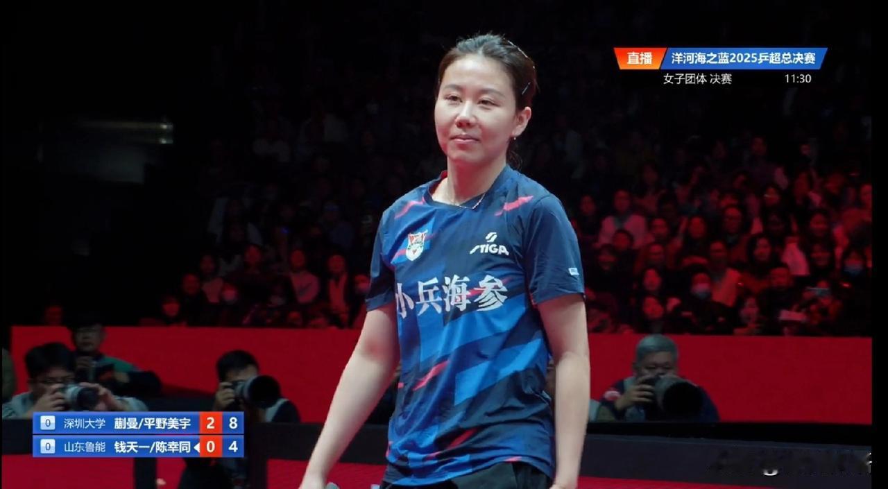 平野美宇打团体赛是真支棱啊。 今天是乒超女团决赛,山东鲁能队王曼昱不上场,徐奕打一单。在刚刚结束的第一盘女双比赛中,蒯曼/平野美宇是3-0赢了陈幸同/钱天一,为深圳大学拿到第一分。刚刚看比赛,蒯曼和平野的女双配的是越来越好了,钱天一在比赛中失误有点多。 昨天的女团半决赛,深圳大学是让蒯曼打一单,今天决赛是继续让蒯曼和平野打女双,第一盘赢下来,后面上场的运动员会更有信心。刚刚女双的爱情,镜头给到在场外的王曼昱,她在下面都着急了,不知道今天山东鲁能队的安排,不过这样的比赛更有悬念吧。 第二盘女单是徐奕对阵覃予萱,两个小将之间的争夺,就看谁打的更坚定了。第三盘是平野美宇对阵陈幸同,肯定也会很精彩,看到平野美宇近期确实涨球了,现在赛场上就很坚定。今天是乒超最后一个比赛日了,大家加油!