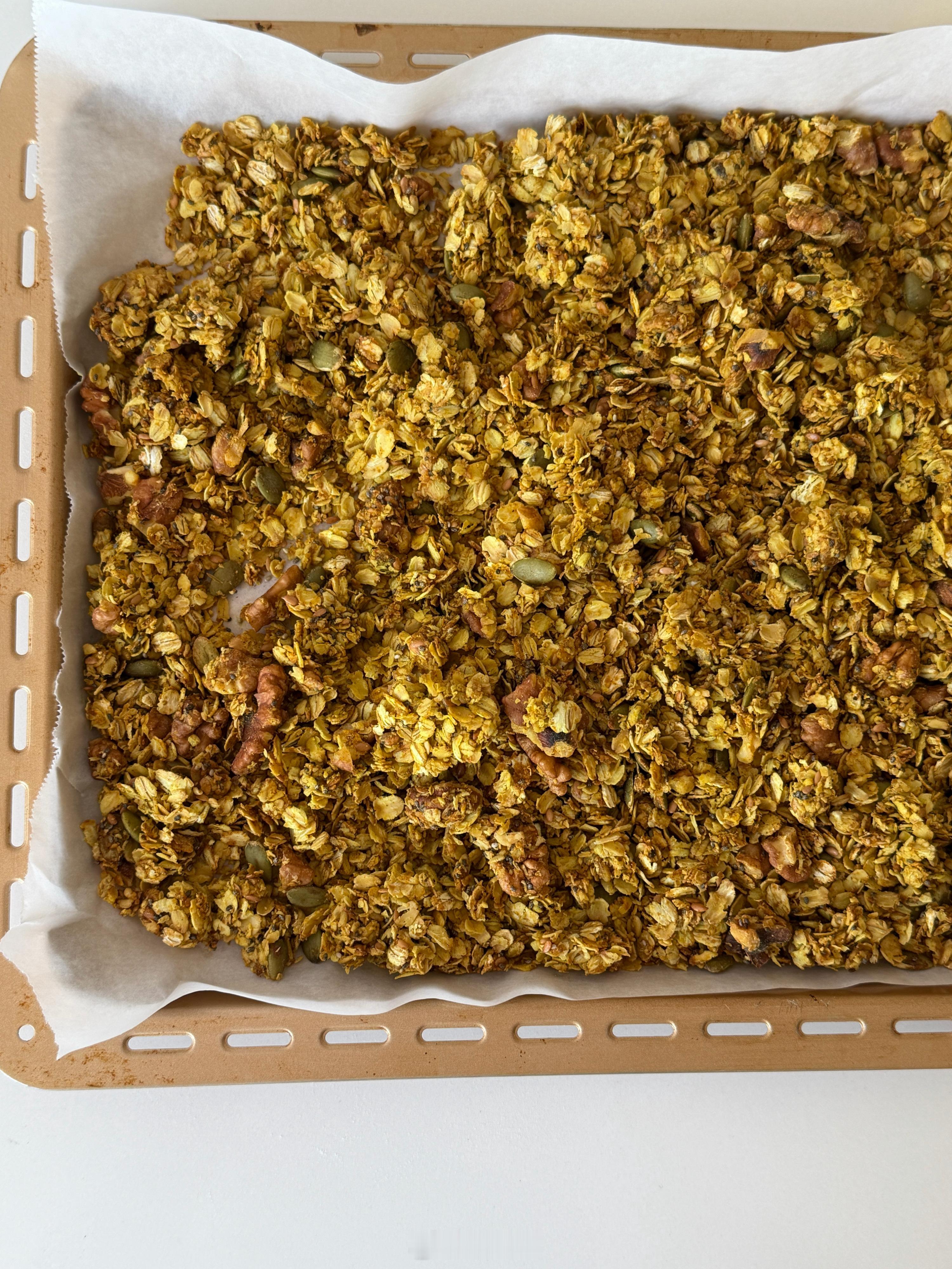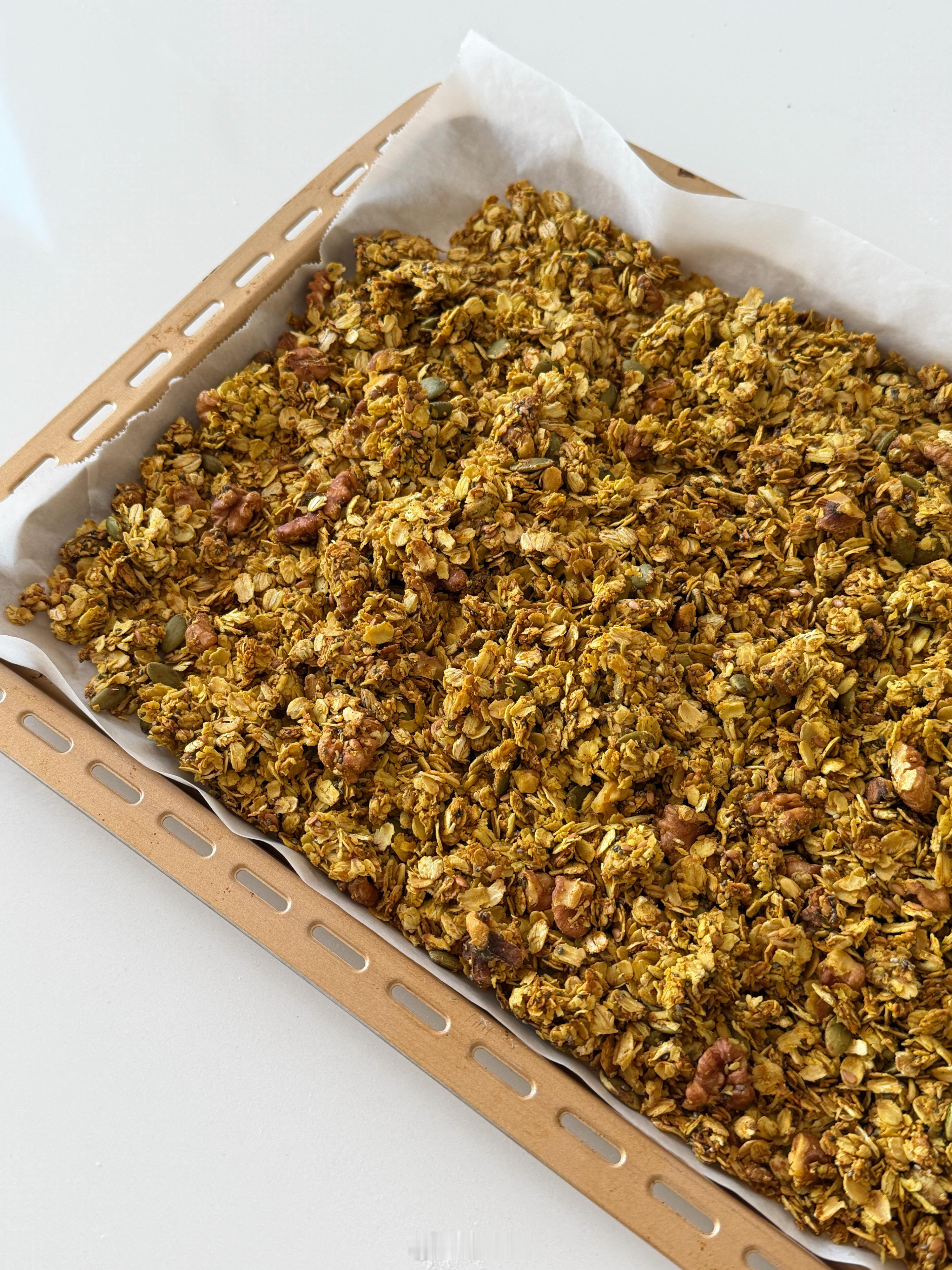 才发现忘记跟大家分享我的姜黄granola烤燕麦啦!上期酸奶碗出镜率最高的单品,