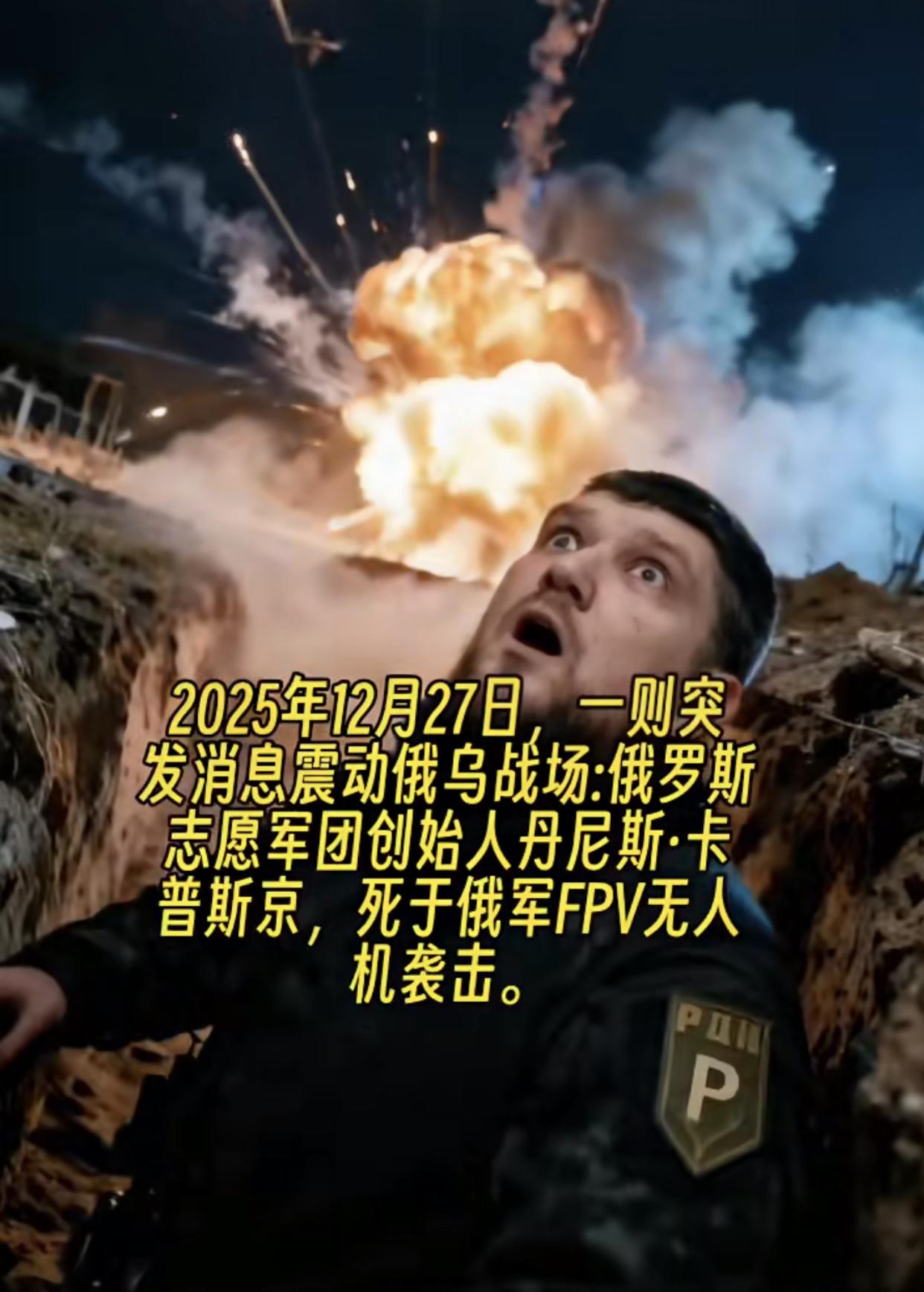 扎波罗热前线突发!俄罗斯最大反俄武装头目卡普斯汀被炸死!反俄武装已官宣确认! 12月27日,俄罗斯志愿军(RDK)在Telegram官宣,其组织领导人卡普斯汀于12月26日晚在扎波罗热前线执行任务时,遭俄军FPV自杀式无人机空袭阵亡。 卡普斯汀是犹太人,1984年生于莫斯科,后离开俄罗斯,获德国国籍,具有极右翼背景。2022年俄乌冲突爆发后,卡普斯汀在乌克兰组建反俄武装组织俄罗斯志愿军(RDK),隶属乌克兰军情总局,俄罗斯志愿军曾多次跨境袭击俄罗斯别尔哥罗德州、布良斯克州等地,为此遭俄罗斯法院判处两次终身监禁。 卡普斯汀长期率部跨境袭俄,搞恐怖袭击,被俄列为恐怖组织头目,此人阵亡或重创该武装组织战力。