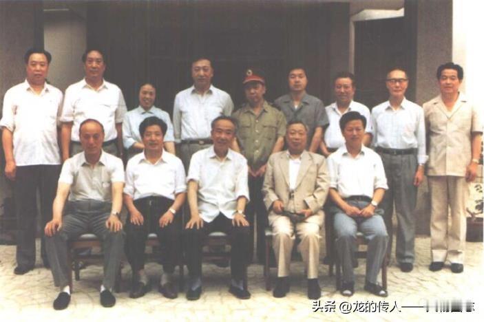1990年,在湖北与省委负责人合影。 前排左起:郭树言、关广富、王任重、黄知真、钱永禄; 后排左起:厉有为、赵宝江、丁凤英;右二为吕乃强