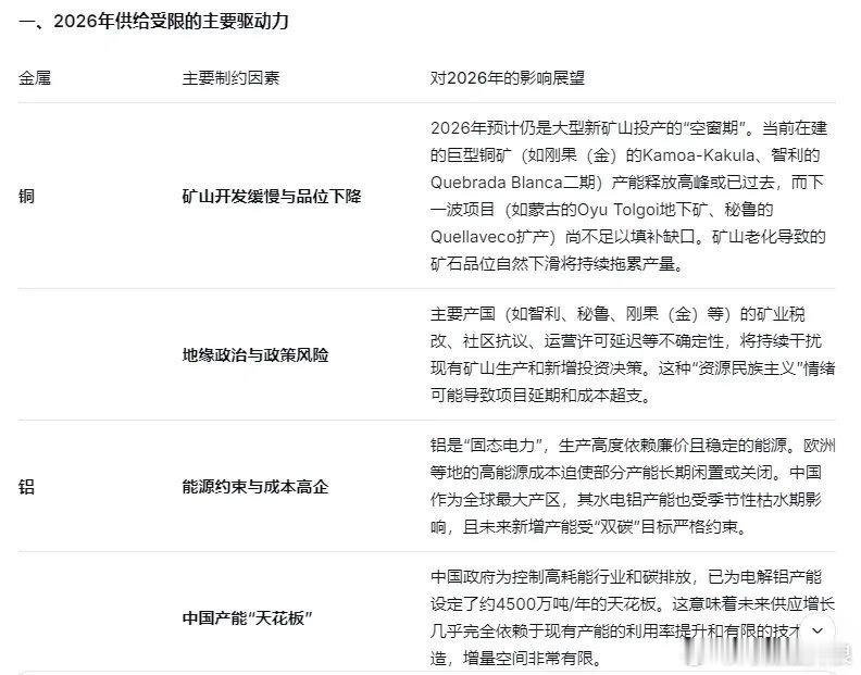 铜铝春季行情可能提前启动,主要因美国降息预期增强以及关税担忧导致美国囤铜行为。加上历年来春节后复工,工厂、工地普遍复工,进入生产和施工旺季,需要提前采购原材料。长期铜铝价值提升的逻辑有三:一是全球货币可能持续宽松,就是放水;二是供给受限,26年仍是大型铜矿山投产的“空窗期”;三是AI带动电力需求增长,利好铜铝消费。供+需+流动性形成了三重共振。铜:紫金矿业:储量产量都是断崖式领先,但市值也很大,金铜双轮驱动,适合稳健。金诚信:储量最小,但吨储量市值1.31倍于洛钼、1.8倍于紫金,边际利润对铜价敏感度最高。铝:中国铝业:产量全球第三。前两是中国宏桥、俄罗斯铝业,不在A股。