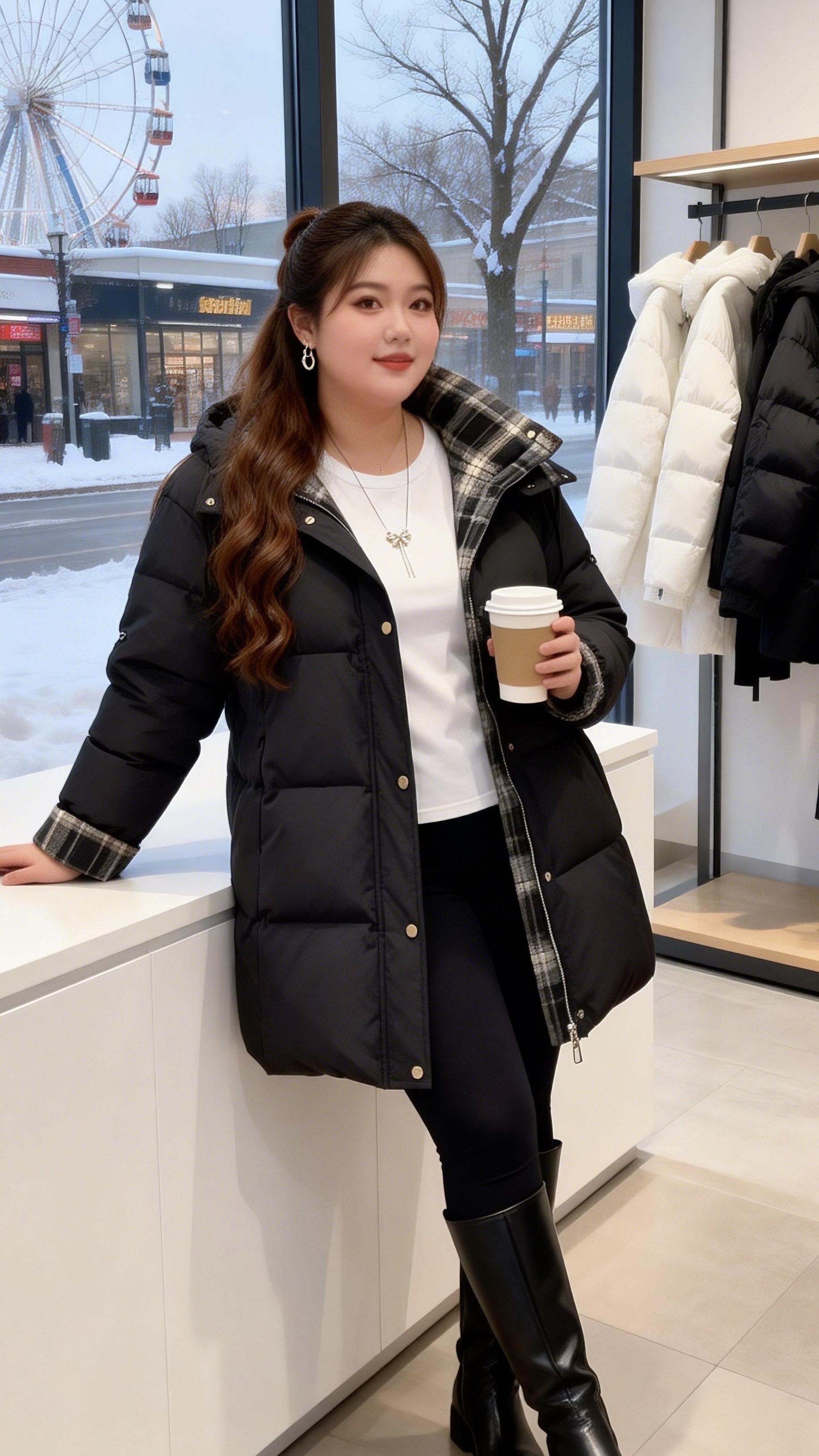 大码女装 保暖外套 高级感穿搭 冬日穿搭一周不重样微胖女生冬日衣服测评