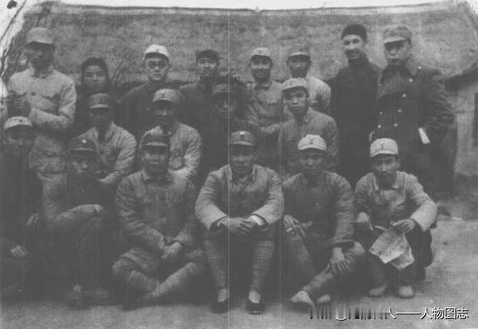 一九四四年淮海区整风学习时合影。黄克诚(中排右二)、金明(中排右一)、刘震(前排右三)、李一氓(后排右一)、吴信泉(前排左二)、杨纯(后排左二)。