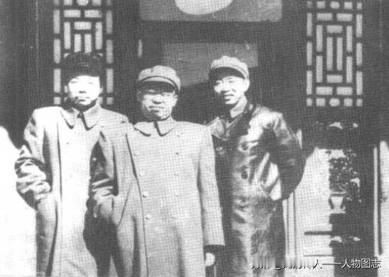 1949年11月,空军司令员刘亚楼(右一)、空军政委肖华(左一)与罗荣桓(中)在北京颐和园