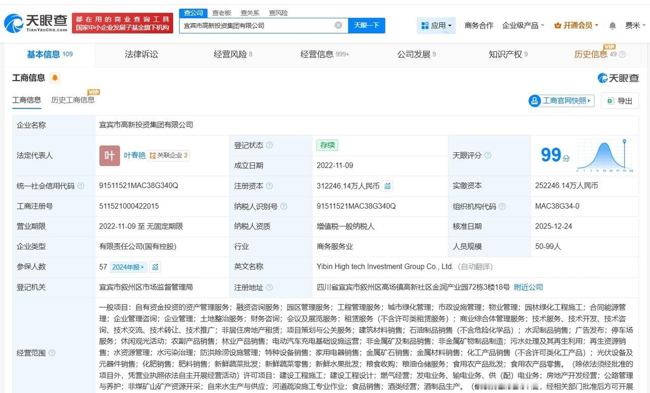 宜宾市高新投资集团增资至31.2亿增幅约13% 天眼查App显示,近日,宜宾市高新投资集团有限公司发生工商变更,注册资本由约27.7亿人民币增至约31.2亿人民币,增幅约13%,同时多位高管发生变更。 该公司成立于2022年11月,法定代表人为叶春艳,经营范围包括自有资金投资的资产管理服务、融资咨询服务、园区管理服务、工程管理服务等,由宜宾市政府国有资产监督管理委员会、宜宾发展控股集团有限公司、宜宾市叙州区创益产业投资有限公司共同持股。 天眼查信息: