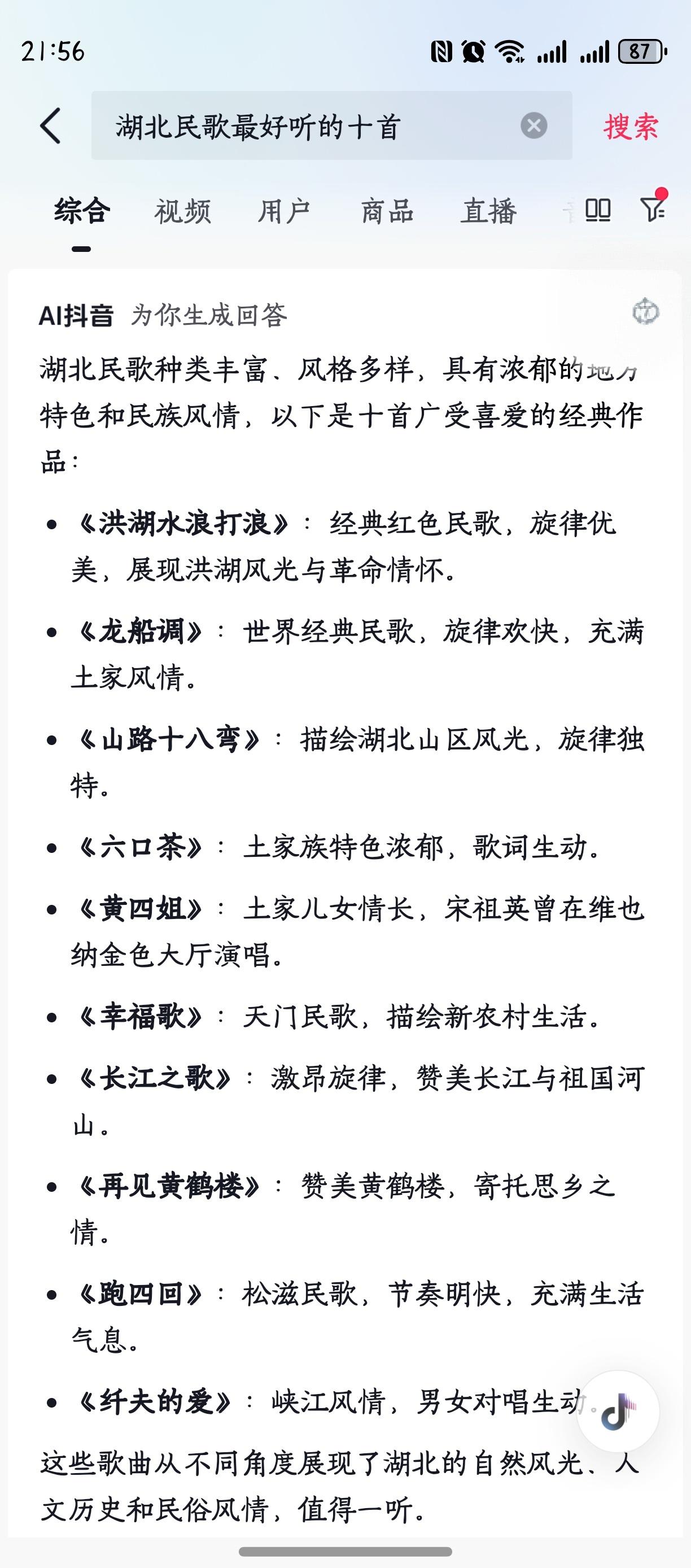 原来这么多耳熟能详的民歌来自于湖北啊![赞] 以前只知道《山路十八弯》唱的是湖北长阳清江和十八拐公路,《纤夫的爱》唱的是清江神农溪纤夫的生活。最近听陈行甲和俞敏洪游长江三峡人家对唱了一段《六口茶》。土家族的民歌山歌太悠扬动听。[祈祷]