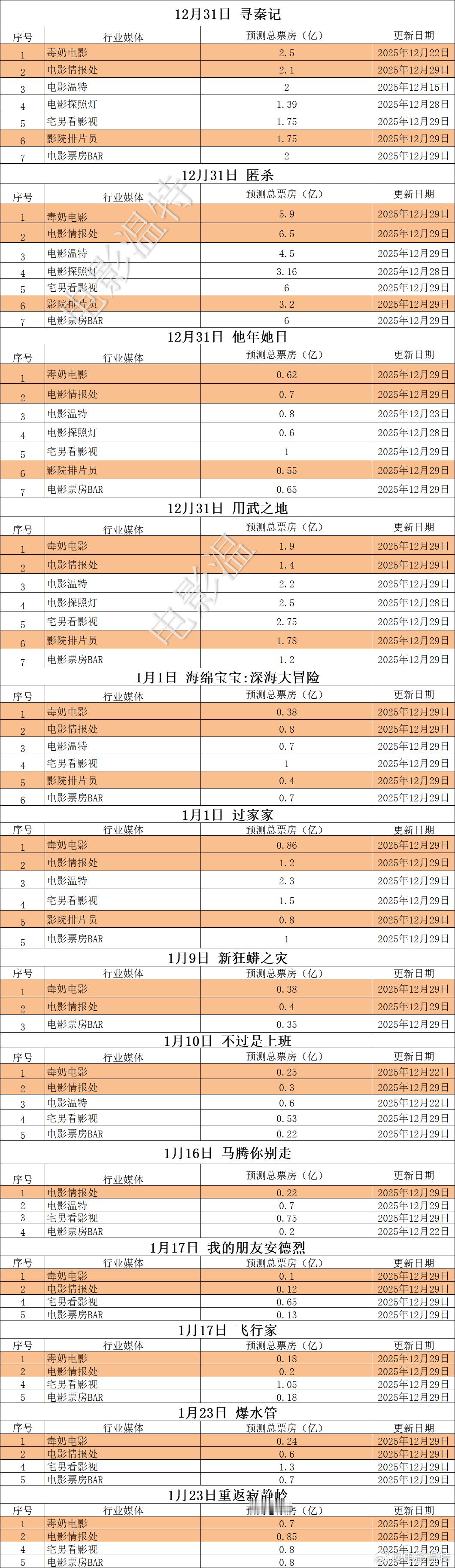 听听温特怎么说超前媒体票房预测映前媒体票房预测 元旦档看看有什么票房黑马出现吧,目前预测都不高。