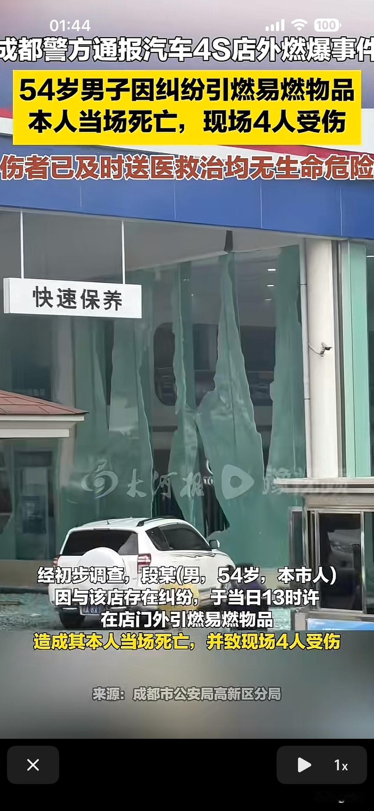 成都警方通报,汽车4s店外燃爆事件 小编发现,近期54岁男子🧍‍♂️因纠纷引