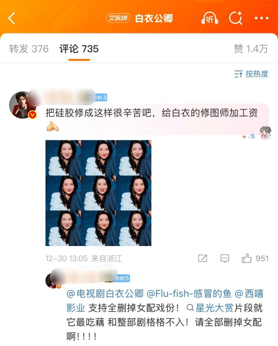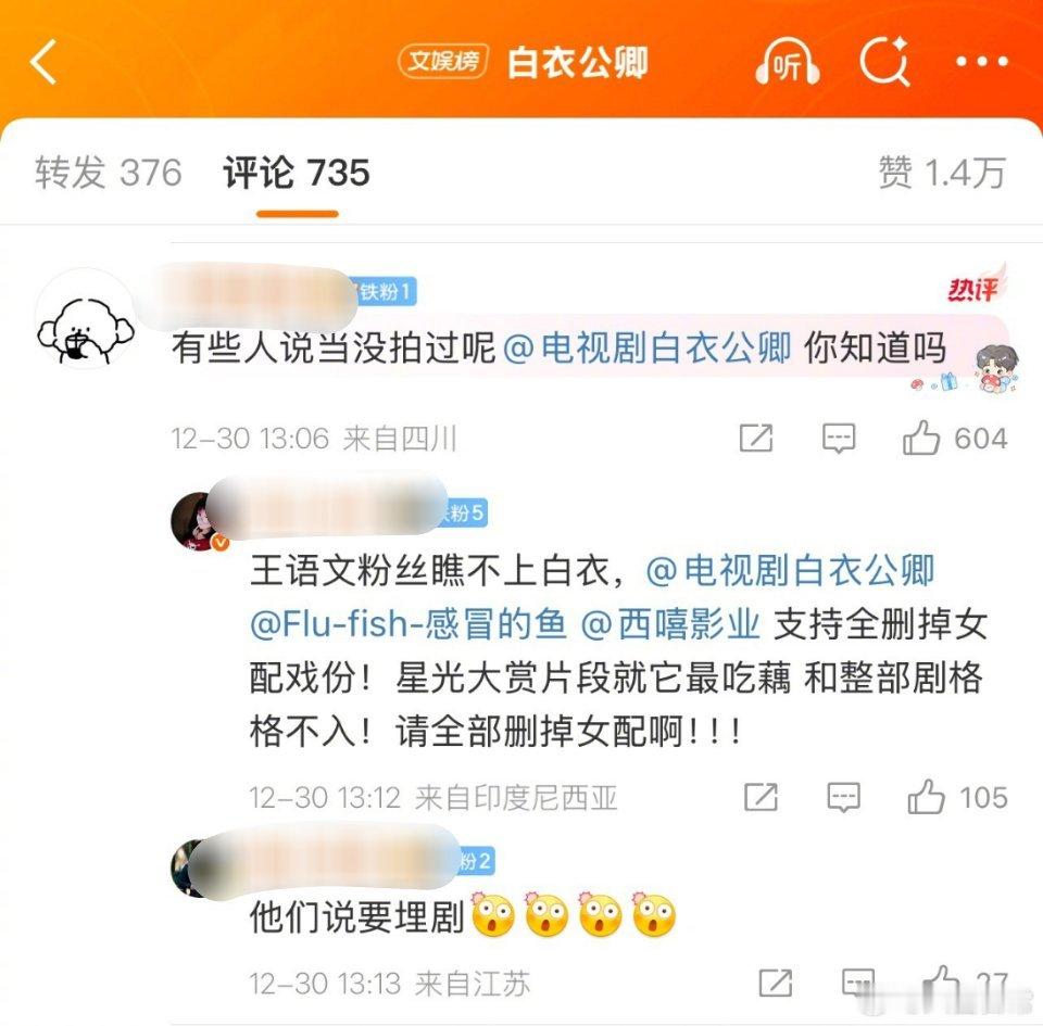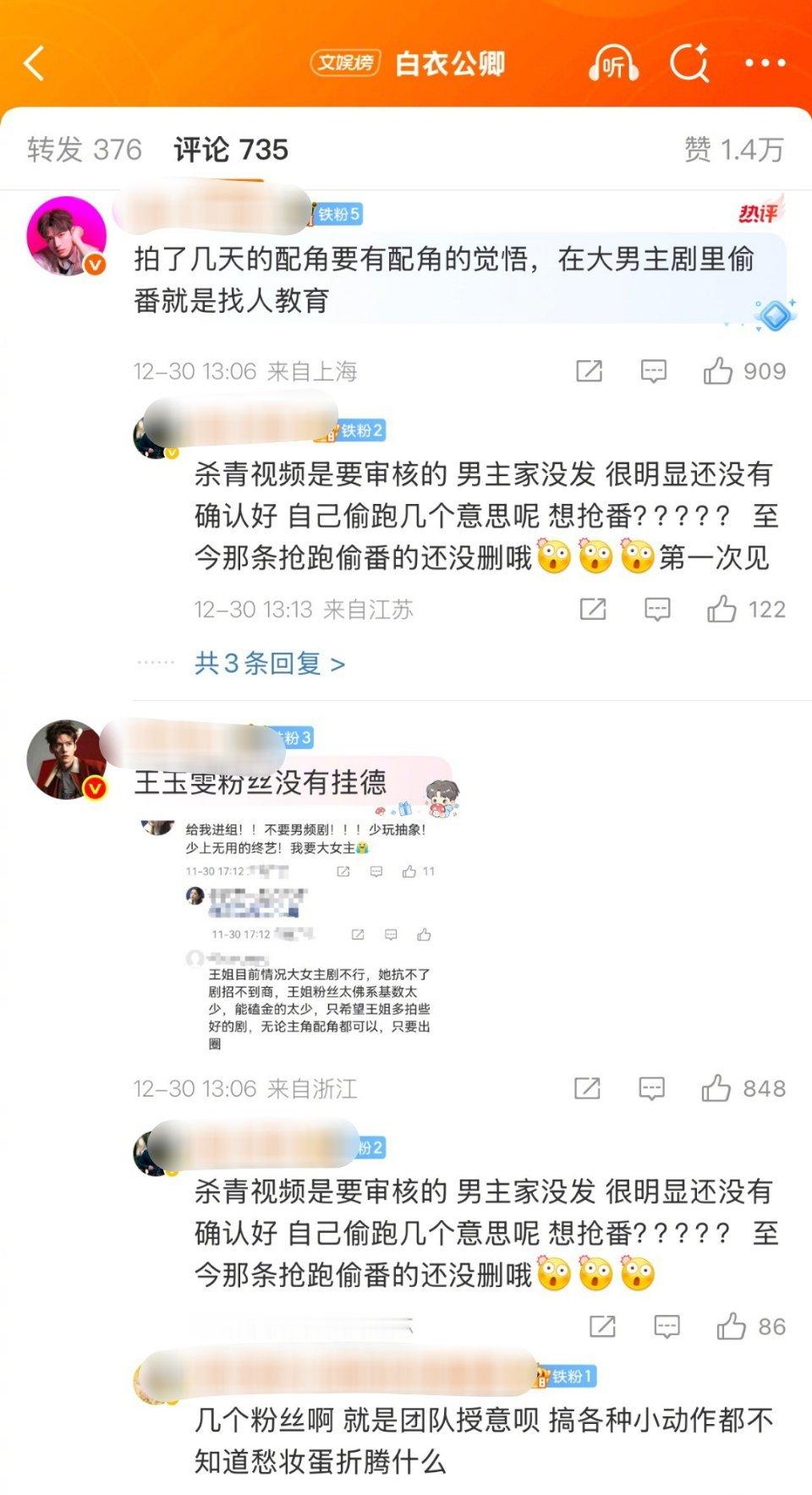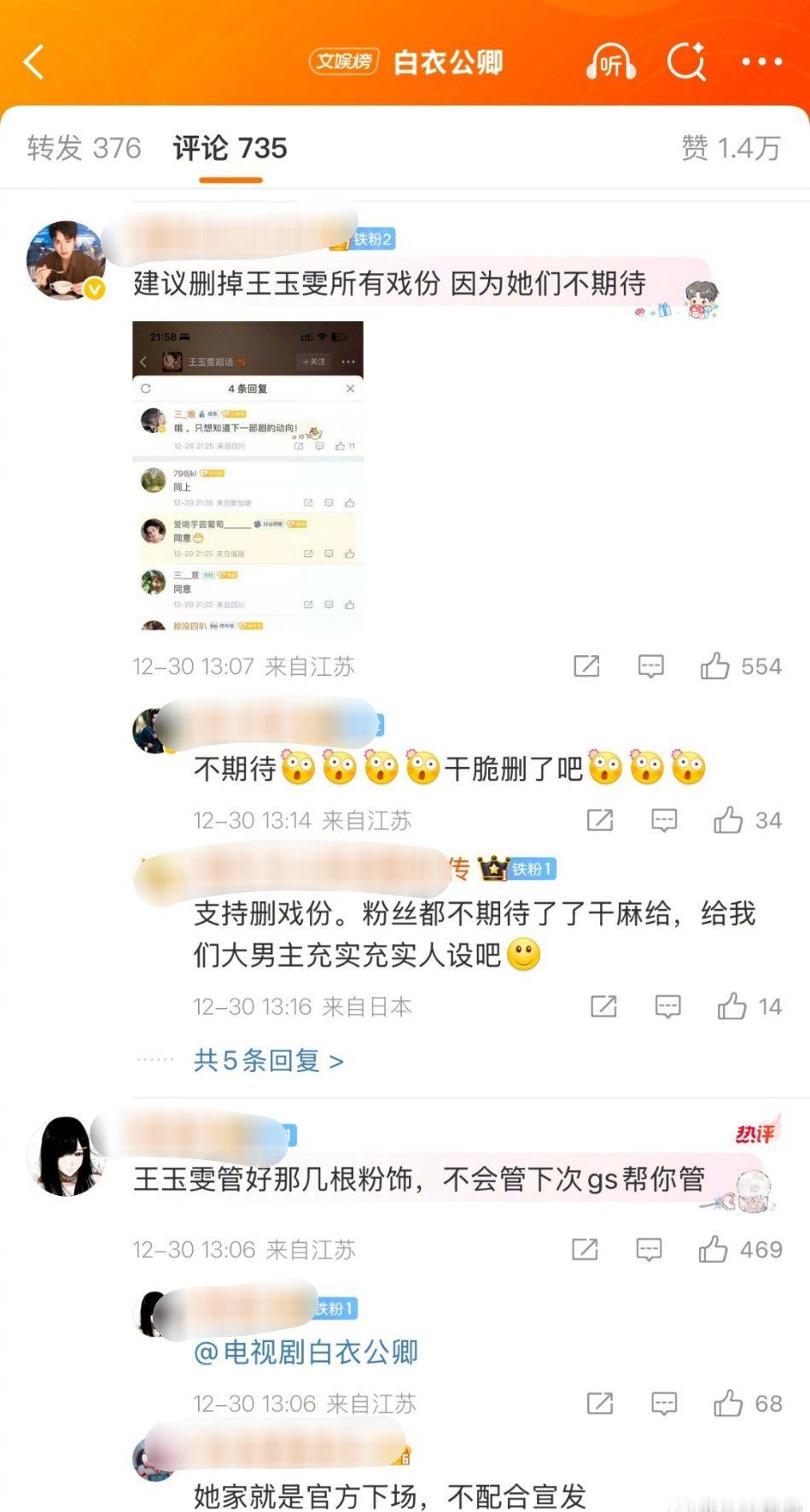 12月30日,龚俊粉丝建议《白衣公卿》剧方删掉王玉雯所有戏份!剧刚杀青,男主粉丝