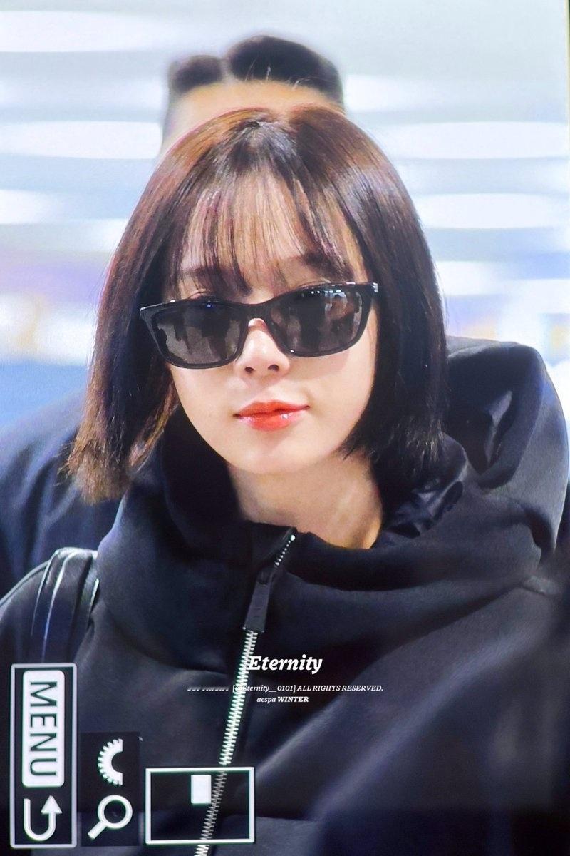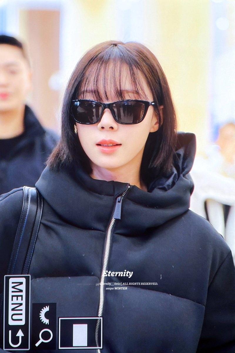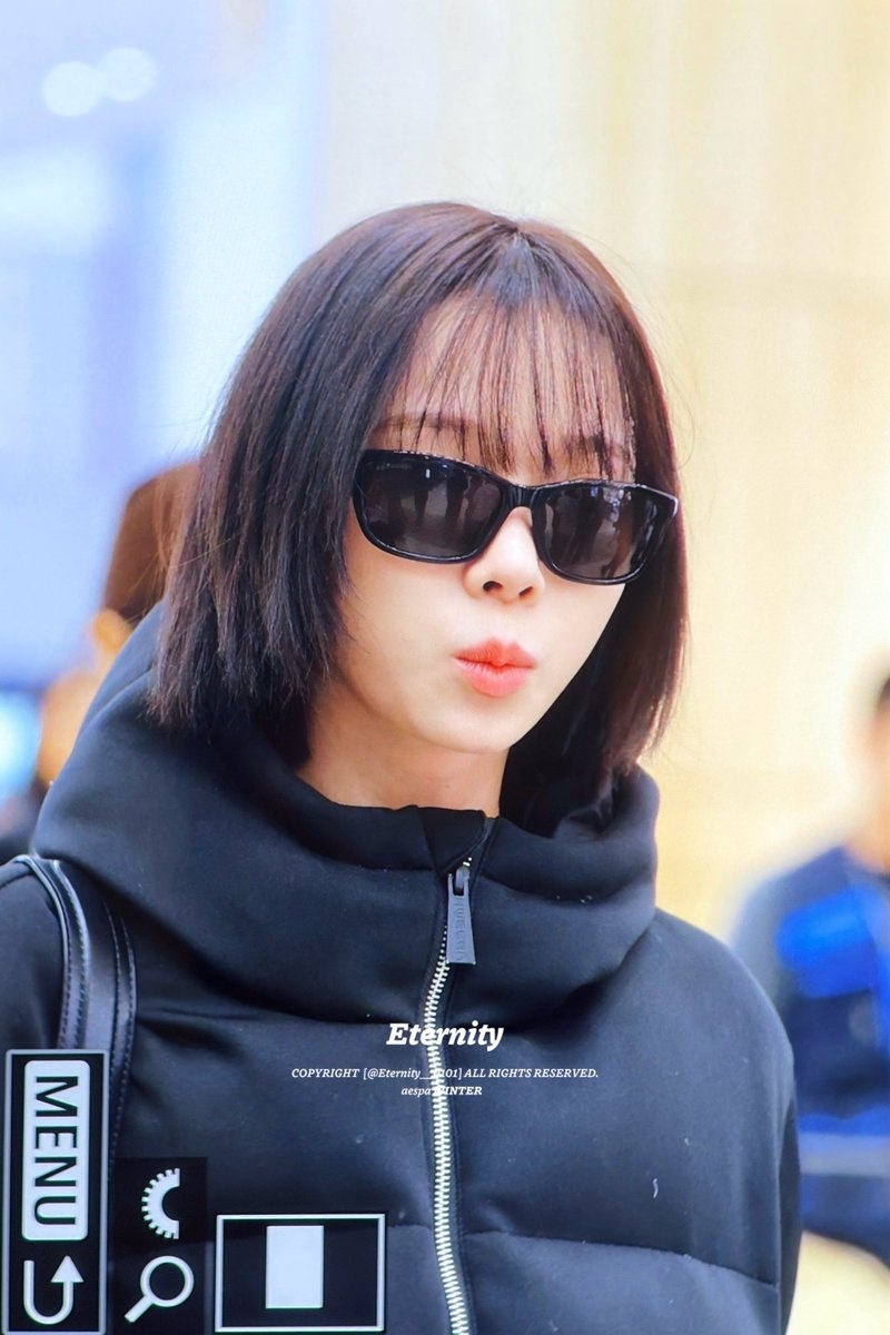 今天短发造型的aespa金玟庭出国机场,短发派雄起!
