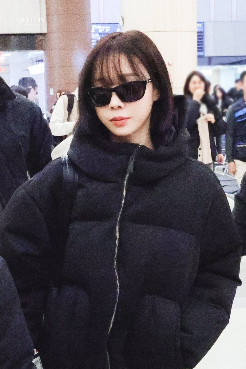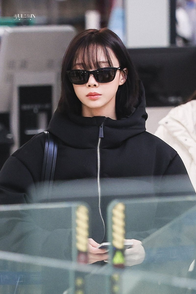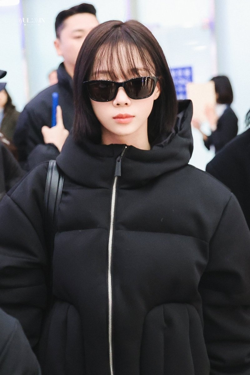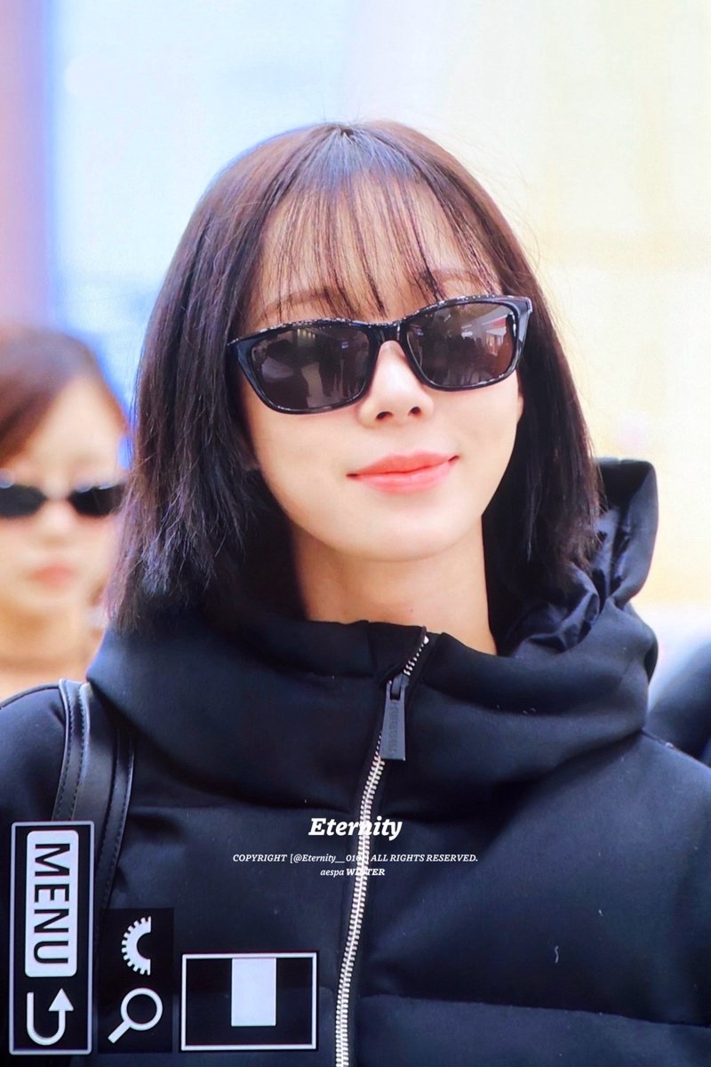 今天短发造型的aespa金玟庭出国机场,短发派雄起!