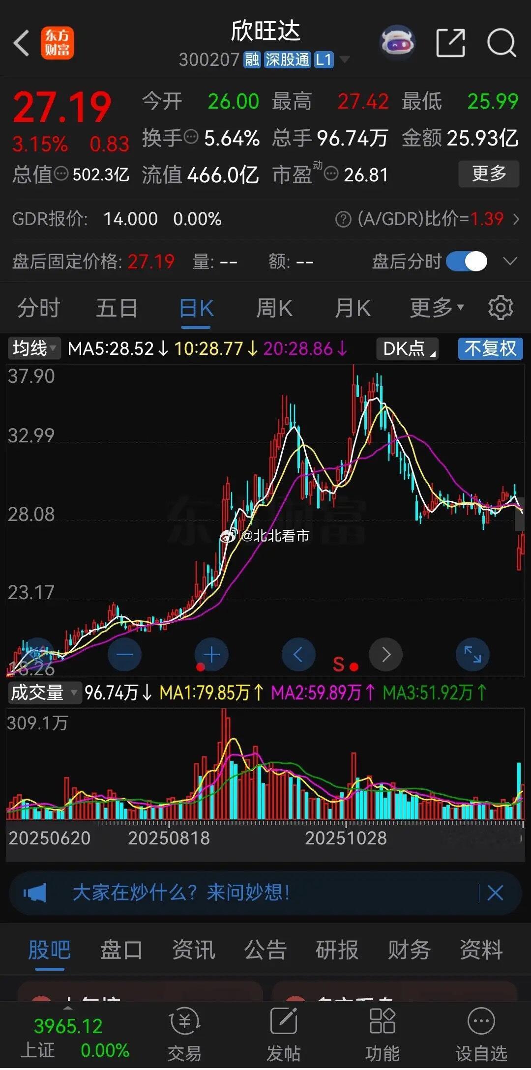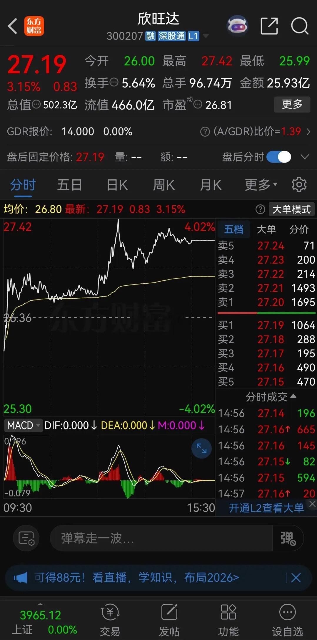 这种突发的利空,才是真正捡钱的机会。上周末,因交付的电芯存在质量问题,吉利子公司起诉欣旺达索赔23.14亿元。受此利空影响,昨天周一开盘欣旺达大幅跳空低开于25元,跌幅达16%。但开盘价就是最低价,随后一路震荡拉升,收盘股价报收于26.36元,虽然下跌了11个多点,但k线收出一根光脚阳线。今天欣旺达小幅低开后一路上攻,盘中最高涨到了27.42元,涨幅一度超过4%,收盘股价报收于27.19元,仍然上涨3.15%。昨天抄底股民全部获利,最大可以获利近10%。而昨天割肉的股民,今天可能又要追着买回来了。