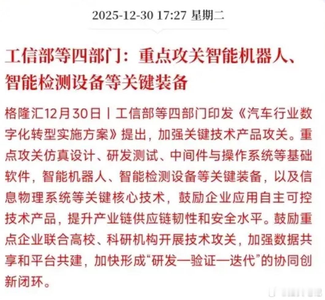 A股刚收盘,机器人板块就砸来政策大礼包!工信部和地方都出台了支持政策,明确了行业标准,不管是整机还是核心零件都能受益。现在车企早就下场造机器人,直接用在自家生产线提效提质,高校也在加码相关布局,应用场景越来越广。这板块今年涨幅亮眼,近期还屡创阶段新高,长期成长空间实打实,后续表现值得期待~