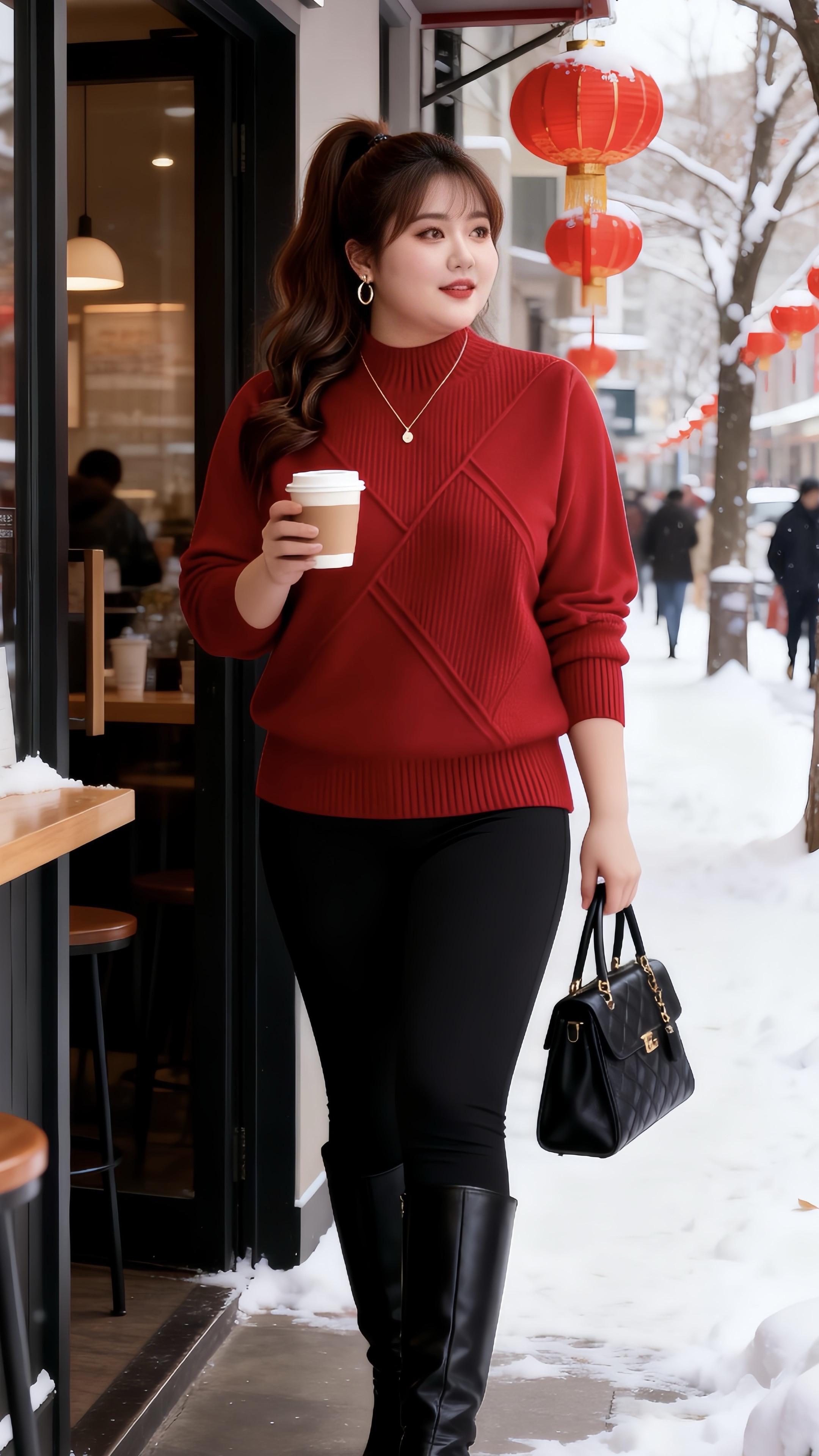 大码女装 红色毛衣新年穿搭冬日穿搭一周不重样微胖女生冬日衣服测评