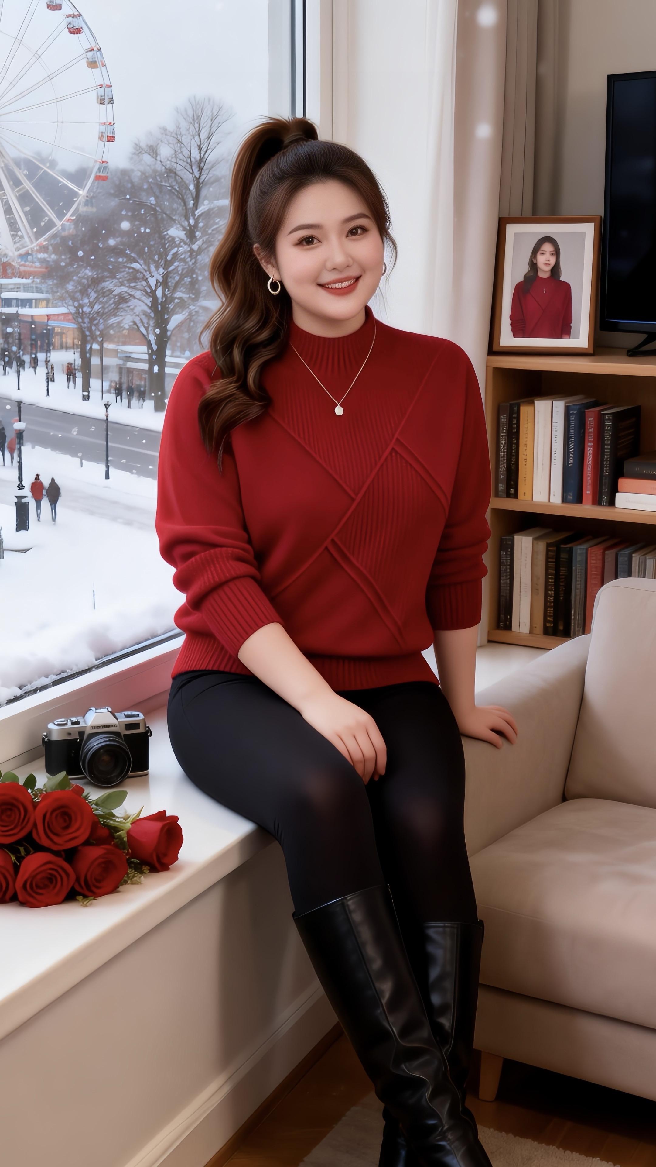 大码女装红色毛衣 新年装扮 冬日穿搭一周不重样 冬季内搭合集