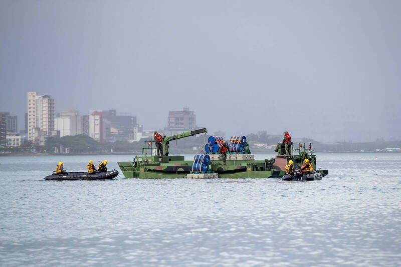 昨天,台军继续在淡水河口布置油桶,演练封锁河道火烧战船的科目……烽火问鼎计划台军承认五大演习区域进入12海里台湾