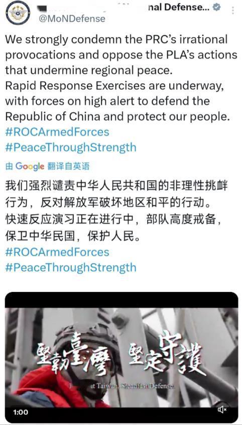 12月29日,台湾防务部门发文:“我们强烈谴责中华人民共和国的非理性挑衅行为,反对解放军破坏地区和平的行动。快速反应演习正在进行中,部队高度戒备,保卫中华民国,保护人民。” 要知道,中华民国早就是过去式了,多少年前的事情了,现在重提中华民国,也是一种“独”的想法,这是台湾方面概念上的一种错误。 另外,现在才想起来保护人民,就有点可笑了。赖清德把台积电送给美国的时候,没有考虑过人民,后来通过111亿美金的对台军售,也没有考虑过人民,这些才是关乎人民切身利益的事情。 然而,解放军开始了对台军演,为的就是能把“干涉主义”挡在外面,这才是保护人民。就好比是,你家老有邻居来指手画脚,每次都是赚你的钱,掏空你的家底,现在有人把这些“邻居”挡在外面,到底是谁在保护你,就比较显而易见了。 两岸的统一是必然的结果,不是政客“偷换概念”就能改变的!