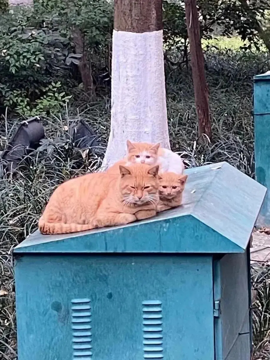 以为是一家三口?四脸懵五脸懵小猫咪是看不腻的