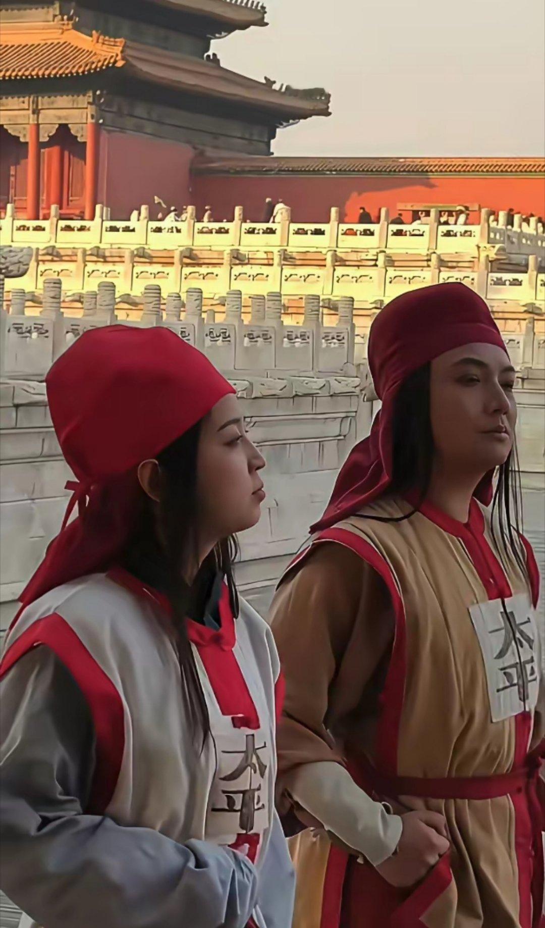 故宫见过汉服、西服、格格服,就是没见过天国服,这两位游客填补了这方面的空白!
