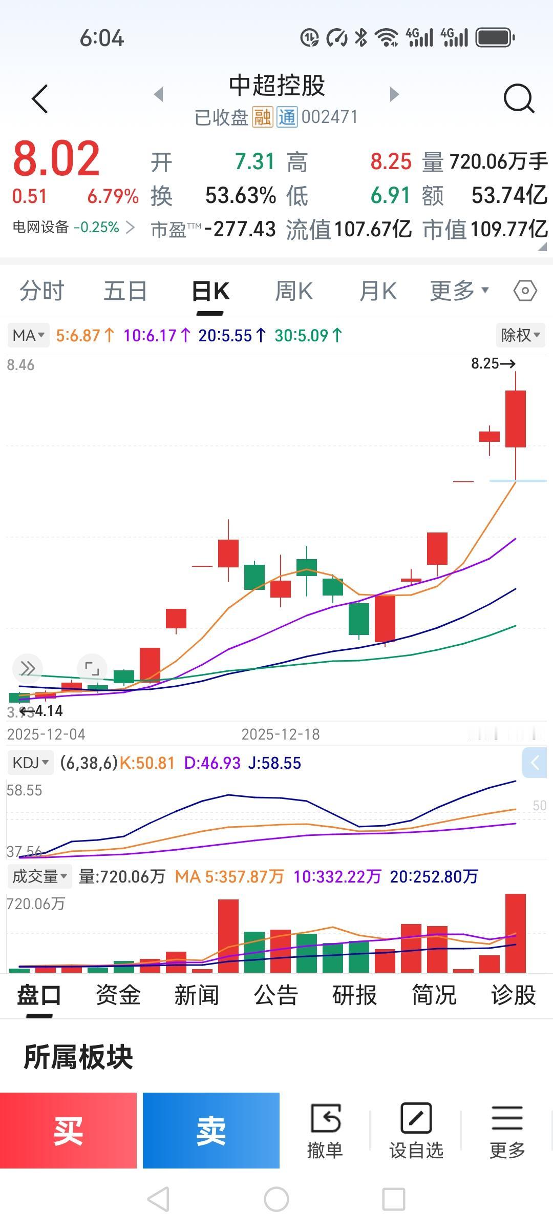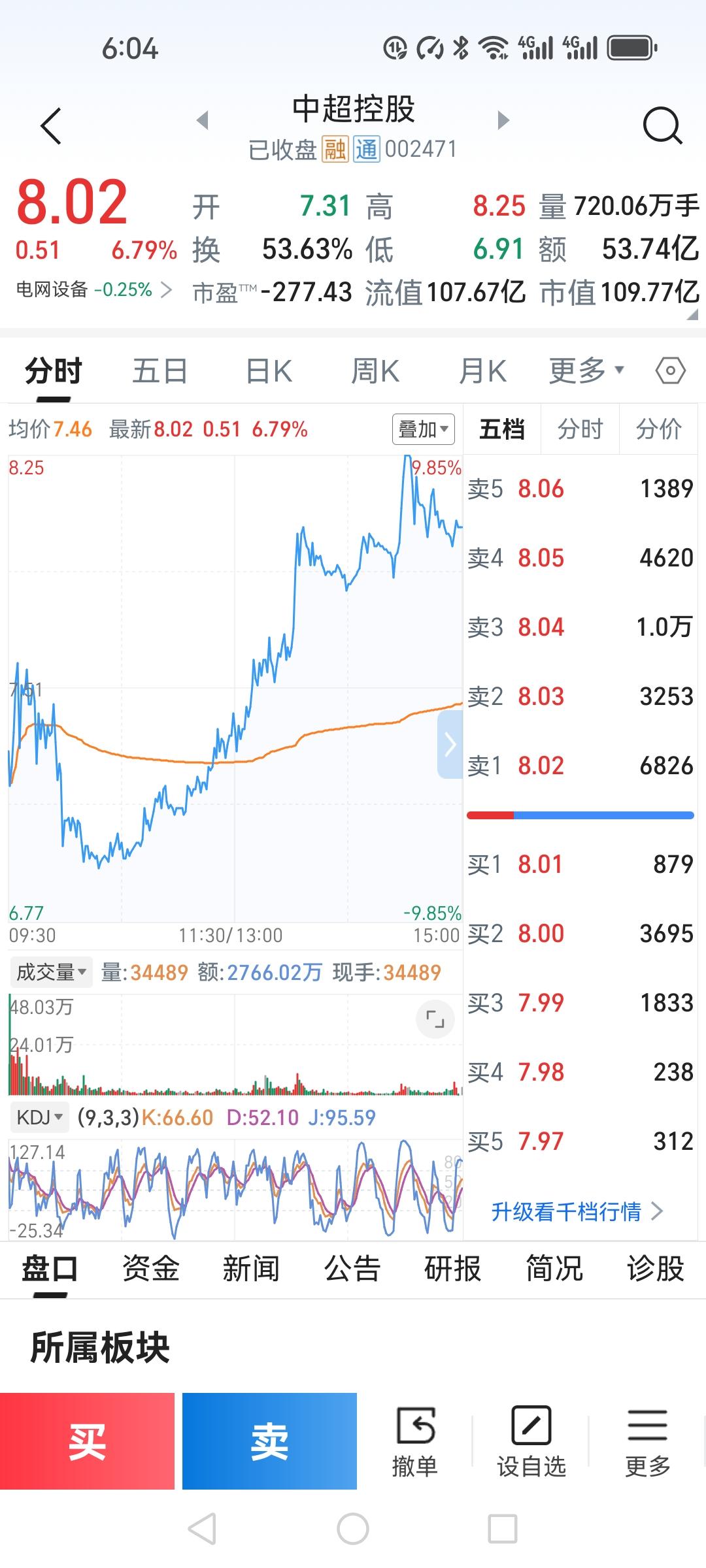 今天大腿都拍肿了。 你们是不不是也会这样。想等跌了抄底,真跌了又怕继续跌;涨了想追,又怕追在高点。这种心态你们有吗?! 今天准备接回中超控股,原定的计划是跌了加仓,可真看到快跌停时,手却僵住了。又担心继续跌,结果眼瞅着它从-9%一路拉到大涨近7%,肠子都悔青了! 其实不是看不懂行情,是败给了自己的恐惧和贪婪。股市里最难的从来不是技术,而是心态。该果断时别怂,设好止损就按计划执行,否则永远在“后悔”里打转! 大家有过这种经历吗?炒股赔了 都跌成这样了
