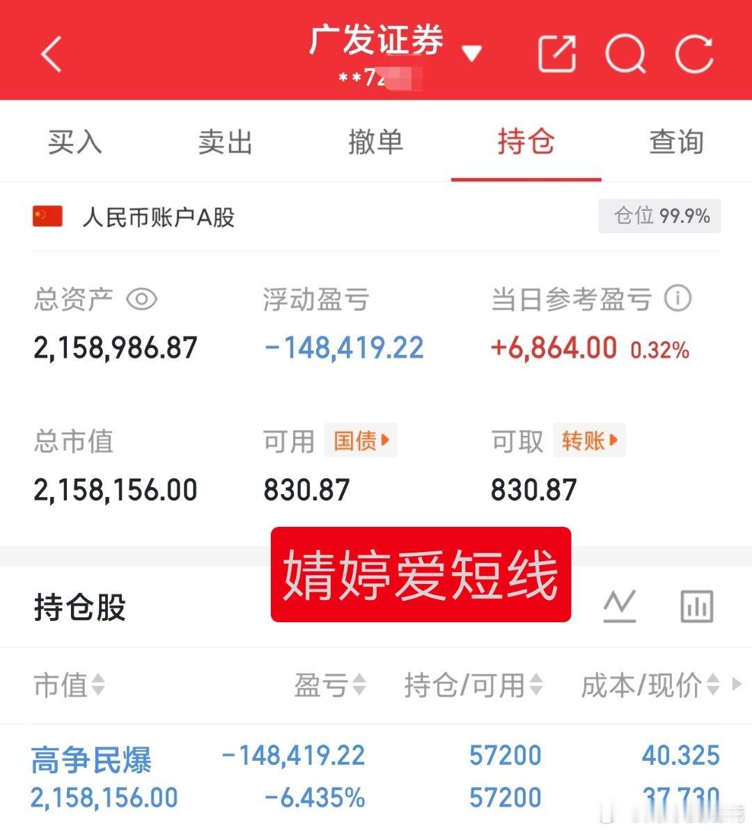 高争没问题的大家心态放好等节后反弹吧,㊗️大家元旦快乐30万本金实盘记录(第375天)目前资金:2158986.87元今日持有:高争民爆 sz002827[股票]我会把每天实盘记录下来,我相信实盘肯定一直往前冲,希望各位股友支持婧婷!点赞富一生,评论888票票长虹!特别声明:这只是我个人的操作记录,不作为任何投资建议,更不是劝你们跟买!股市有风险,投资需谨慎!!!🙏🙏🙏股票上证指数a股炒股技巧