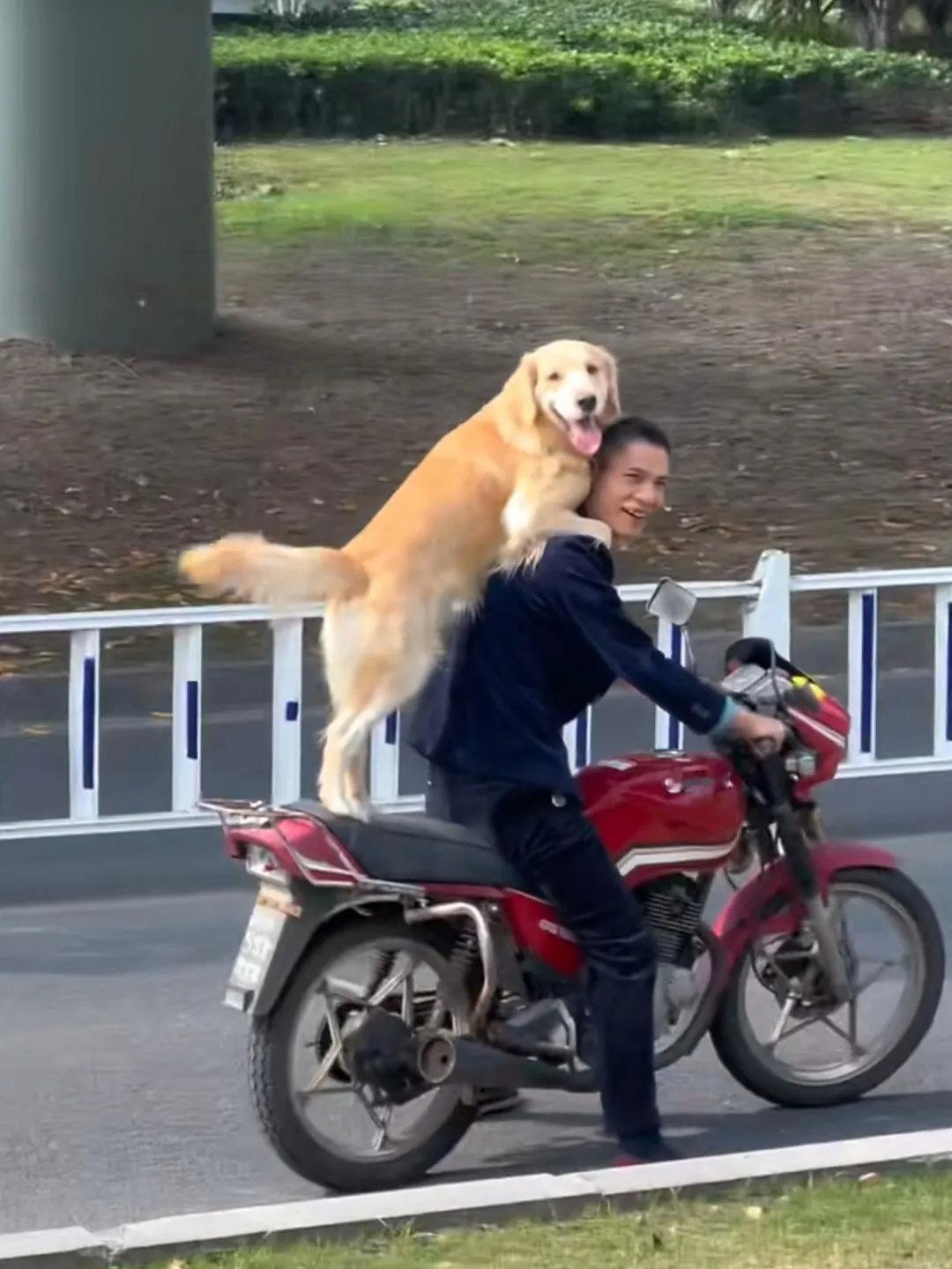 狗狗和主人一起回眸笑,好有爱的画面啊!网友:狗跟主人每做一个动作就转过头一脸期待的等待别人的夸奖,那表情好同步![狗头]