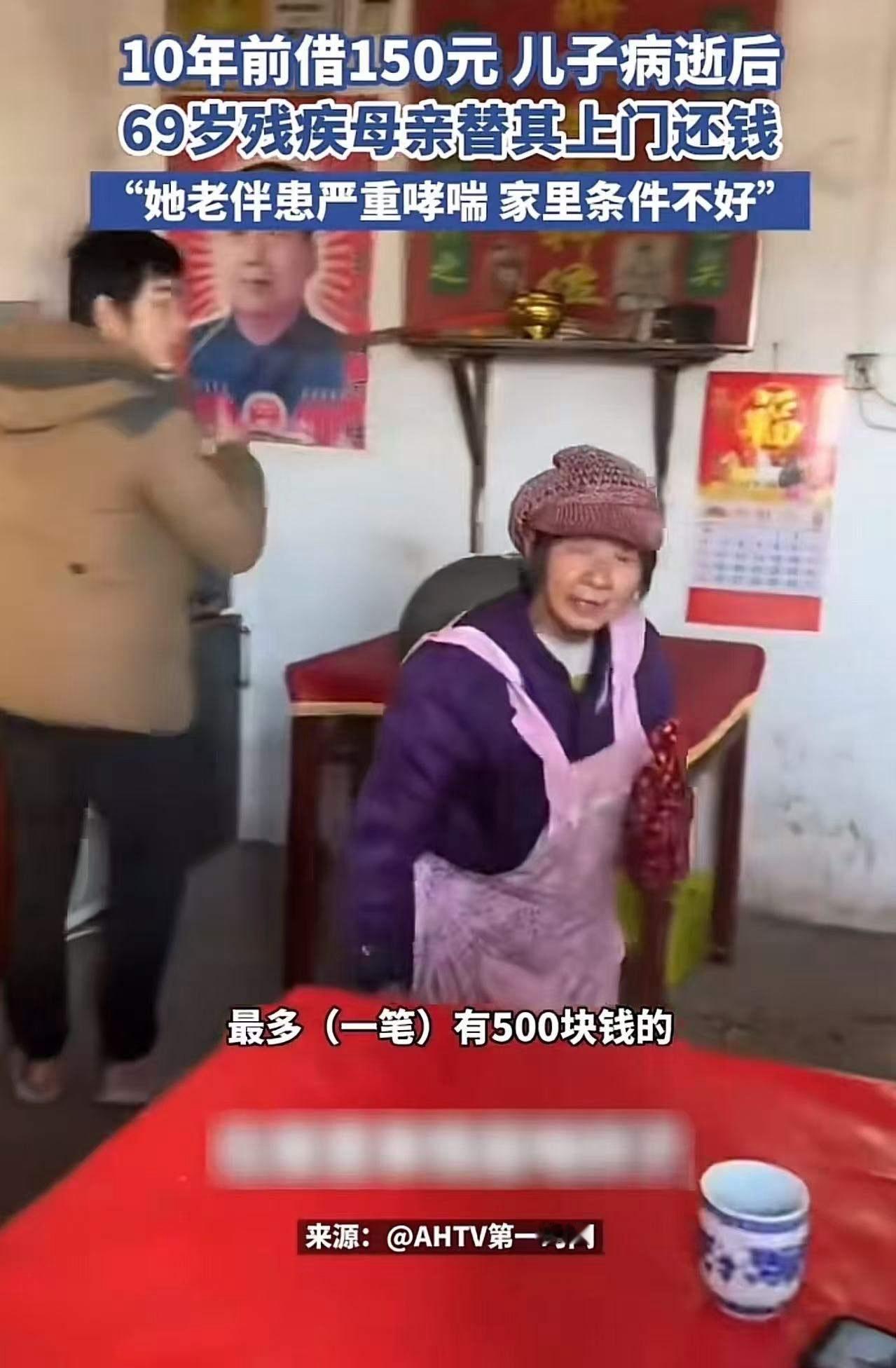 69岁残疾母亲替去世儿子还债,看哭全网!湖南衡阳,这个普通的乡村角落,却因为一段令人心碎的故事,瞬间成为了全国关注的焦点。 儿子去世了,本应是悲伤与缅怀的时刻,但这位坚强的母亲,没有选择沉浸在悲痛中,而是用行动诠释了什么叫“母爱如山”。她靠着一只手,日复一日、年复一年,在微薄的收入中拼搏,努力偿还儿子留下的13笔债务。每一笔还款背后,都是她无尽的爱与责任。 “人死了不能欠来世债,替他还了我才安心。”这句话,瞬间击中了无数人的心。或许有人会说,这样的坚持是不是太过执着?但谁又能真正理解,一个母亲对儿子的爱,有多深、多重?在这个社会,有多少人愿意为了“债”而如此坚韧?又有多少人愿意为了亲情,放下一切,默默付出? 网友们的评论也让人感慨万千:“那些老赖看看吧,你们连一个残疾的老人都不如!”这句话,仿佛是一面镜子,映照出社会的冷漠与善良的对比。有些人可以轻易逃避责任,有些人可以置亲情于不顾,但这位母亲用行动告诉我们:责任与爱,是任何困难都无法击垮的力量。 这个故事让我们深刻反思:在这个物欲横流的社会,真正值得尊敬的,或许就是那些无私奉献、默默坚守的人。我们习惯了追求物质的丰富,却忽略了身边那些用生命书写善良的人。母亲的坚韧,像一束光,照亮了我们心中那份被冷漠侵蚀的善良。 更令人动容的是,这位母亲的行为不仅仅是对儿子的承诺,更是对自己一生的交代。她用行动告诉我们:生命的意义,不在于拥有多少,而在于付出多少。她的坚持,让我们看到了人性中最温暖的一面——责任、爱与坚韧。 或许有人会问:“这样的事还能坚持多久?”但我相信,只要心中有爱,就没有什么可以阻挡那份力量。这个故事,也让我们反思:在快节奏、功利的社会中,我们是否还能保留那份纯粹的善良?是否还能在生活的压力下,坚守那份责任感? 最后,我想说:这位母亲的故事,是对所有人的一记警钟,也是对善良最好的诠释。我们每个人都应该学会感恩,学会担当,更要学会用行动去温暖这个世界。也许,你我都能从中汲取力量,成为那个在困难面前不低头、在善良中坚守的人。 看完这个故事,你是否也想起了身边那些默默付出的人?你是否也被那份母爱的伟大所感动?请在评论区留言,让我们一起为这位坚强的母亲点赞,也为这个世界多一些善良与温暖。伤心欲绝的母亲