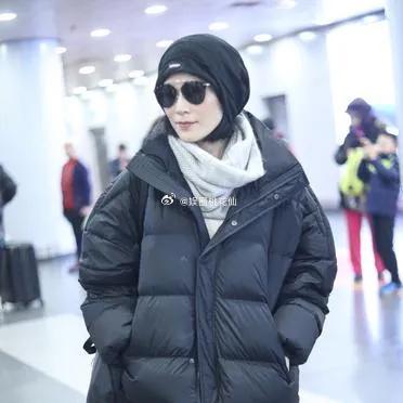 俞飞鸿不愧是时尚标杆,羽绒服保暖不臃肿,打底裤配过膝靴,勾勒好身材,飒爽又优雅,洋气高级范儿尽显
