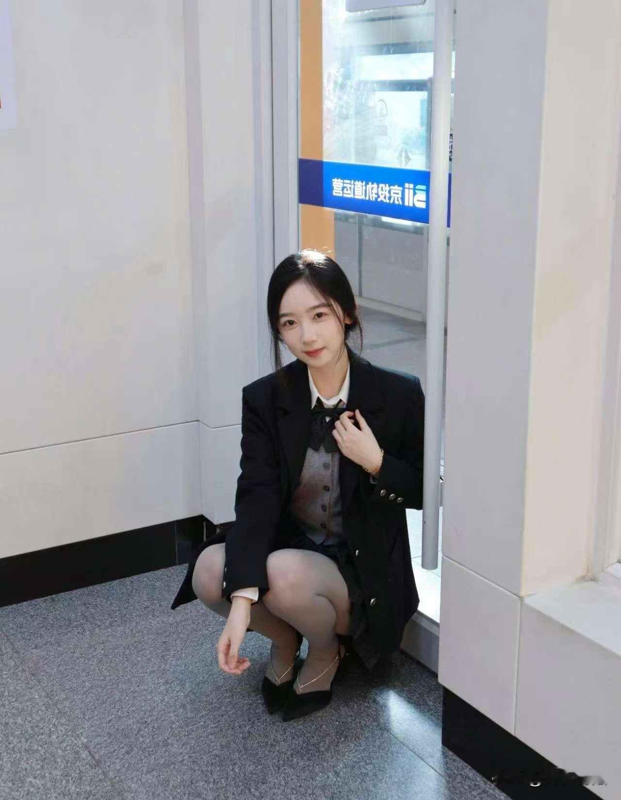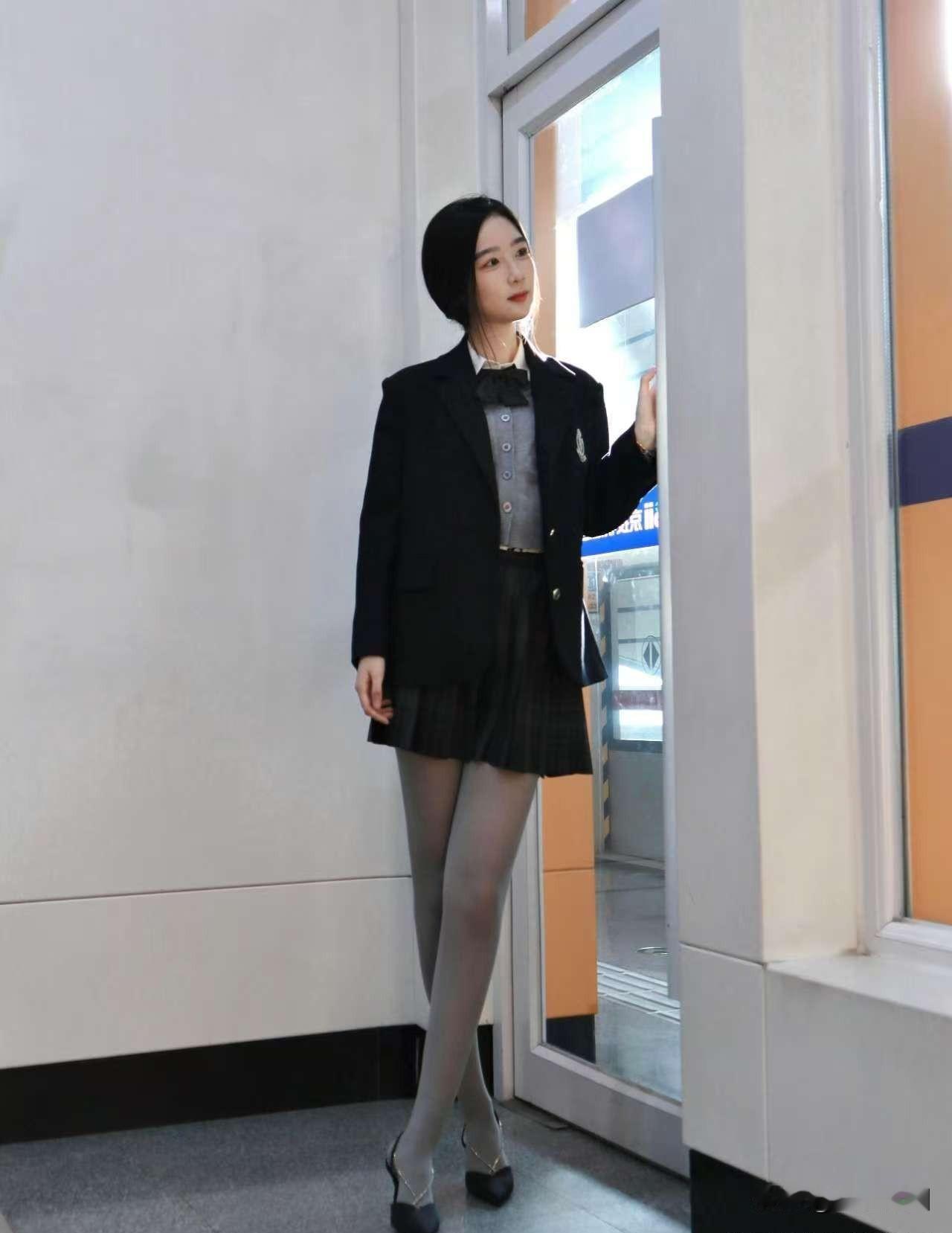 这姑娘在复古走廊摆现代的POSE。