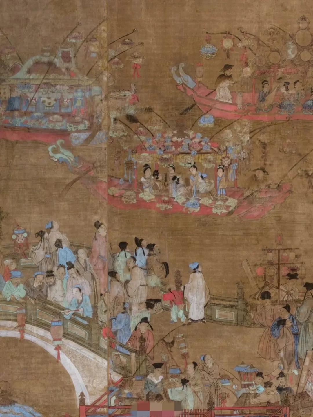令人震撼的明代元宵上河图,图上不止有孙悟空猪八戒的cosplay,还能看到超多现代奢侈品借鉴的花纹。 这是明代万历年间巨大尺寸的绢本画作,足有4米×2米。可惜早年流失海外,因为是六条立轴,就被老外剖开做成六个屏风,作者和题跋全切割没了,所以也无从得知是谁画的,画的是某一年。 画中是明朝上元节灯会,中间的鳌山彩灯足足有百多盏,每一盏都不一样,这些花灯抽象成大小不一的圆,由各种织纹、宝相花、团花、几何纹、色块…再以严密的结构,组成类似“金字塔”的视觉结构,可想而知实景是多么震撼。 画中有上百人物(神仙、官员、百姓、军士、孩童、杂技、乐人等),中央树顶端还有莲座佛像,角落出现了云雾寺庙与龙舟。但每个人物大小被严格控制,像音符一样排列。 这副画在2015年芝加哥一个小拍,仅仅以3万美元落槌,被诺顿博物馆(John and Heidi Niblack基金会委托一个华裔叫Laurie Barnes 潘筱莉)拍得,经过好几年的修复(据说找的是中国画专家),2019年对外展出,成为该馆的镇馆之宝。 这副画极为珍贵,又经历过早年粗暴裁剪和几轮后期修复,如今非常脆弱,诺顿博物馆每年只在农历新年到元宵节期间短时期展出。可以说,这副明代《六条屏元宵图》的艺术性堪称一流,甚至超越了时代。古代清明上河图 清明上河图灯会 元宵节美景图
