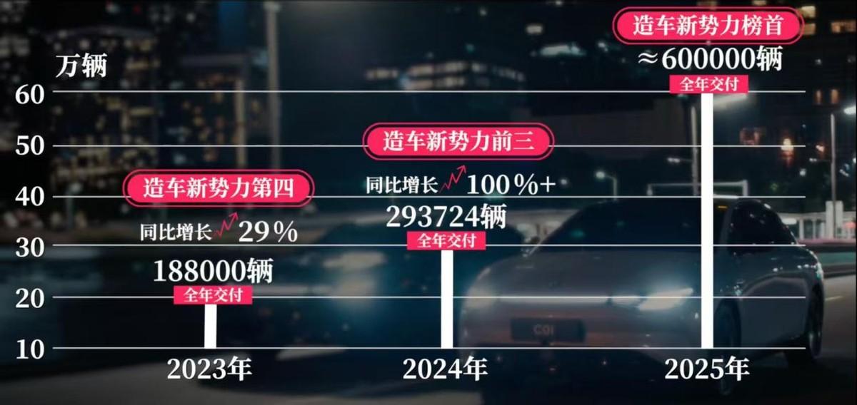 拿下中国造车新势力年度销冠!零跑25年销量近60万。 今日,零跑公布了12月销量,交付量高达60423台,2025年累计销量近60万台,直接拿下中国造车新势力年度销冠,可以说零跑用这一成绩为过去十年的奋斗画上了圆满的句号。 在这样的大背景下,前几天的零跑十周年发布会显得更有意义。在发布会现场,零跑CEO朱江明说了22个谢谢,感谢了这十年来对零跑提供帮助的同路人,还感谢了120万车主对零跑的高度支持。 用朱江明的话说,零跑能取得如今非凡的成就,全域自研功不可没。通过全域自研,零跑在核心领域自研自造的比例高达65%,有助于研发及制造环节的效率实现最大化,并形成规模效应。并且全域自研也让零跑拥有更大的话语权,议价能力更强,能够持续为消费者打造“好而不贵”的产品。就拿十周年发布会上亮相的D19和D99来说,搭载了多项行业领先技术,30万级的价格就能提供百万级的豪华体验,将”好而不贵“贯彻到底。 可以预见的是,坚持全域自研的零跑,2026年会创造更多辉煌,百万台销量目标可不是说说而已! 零跑汽车造车新势力零跑汽车:2025全年交付 59.66万台