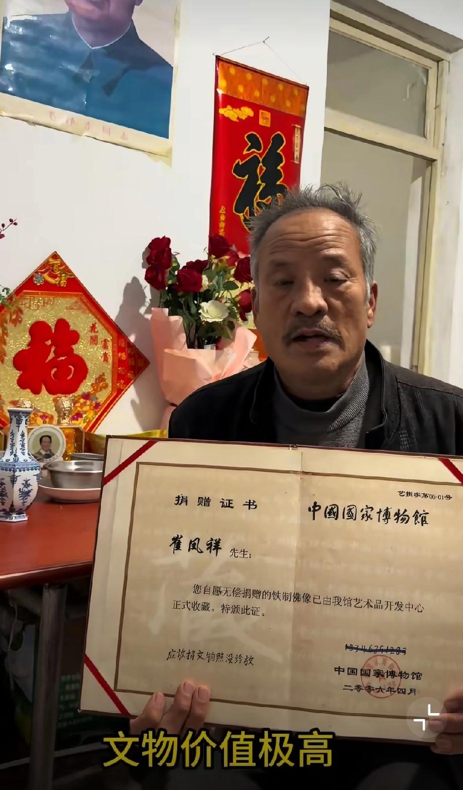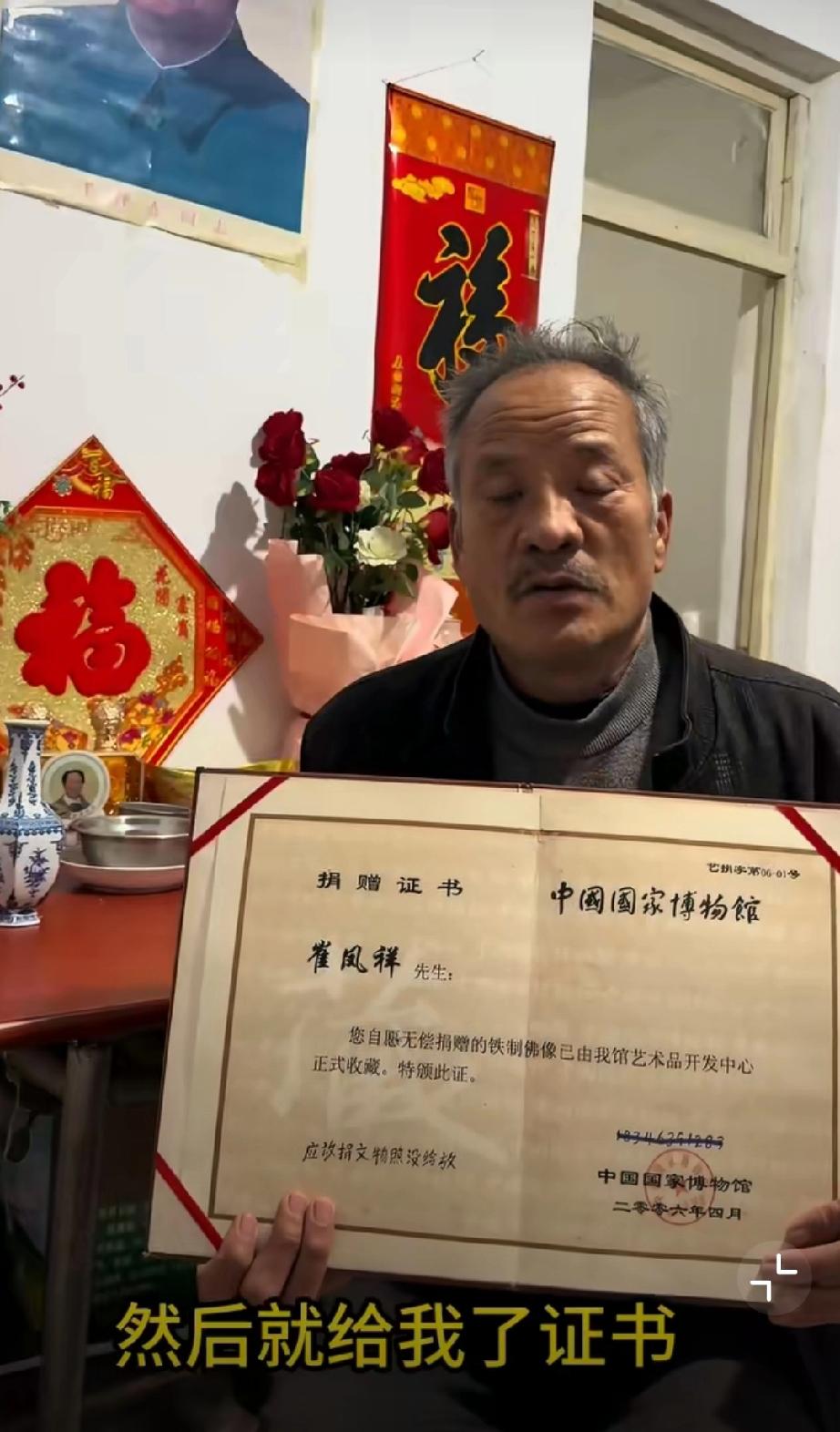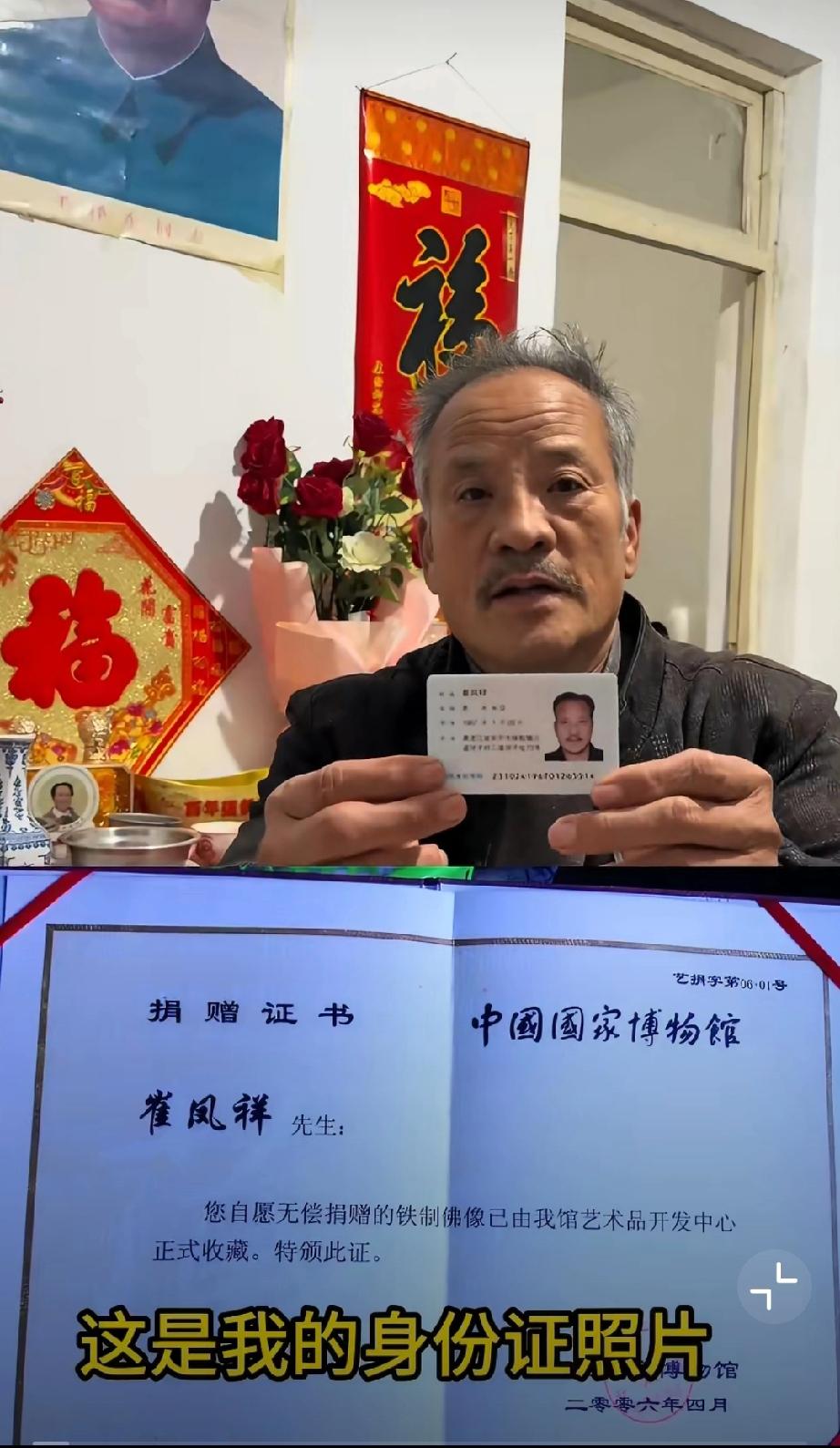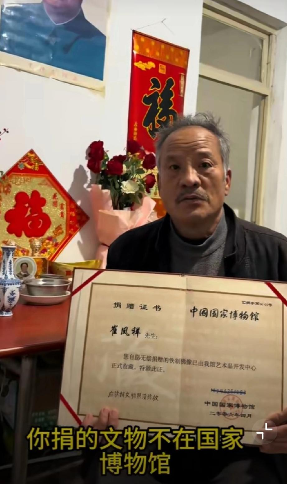2025年12月31日,崔凤祥老人发视频称:明代鎏金佛像捐赠国博后去向成谜,捐赠人追索近20年未果。(来源:(大崔还没老崔凤祥捐赠国博号主)南京鎏金 崔凤祥 千凤呈祥