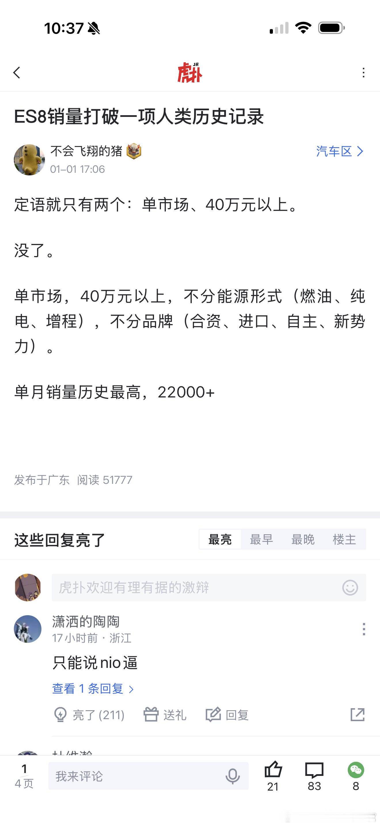 ES8上个月的销量确实是历史级的AutoLab大v聊车