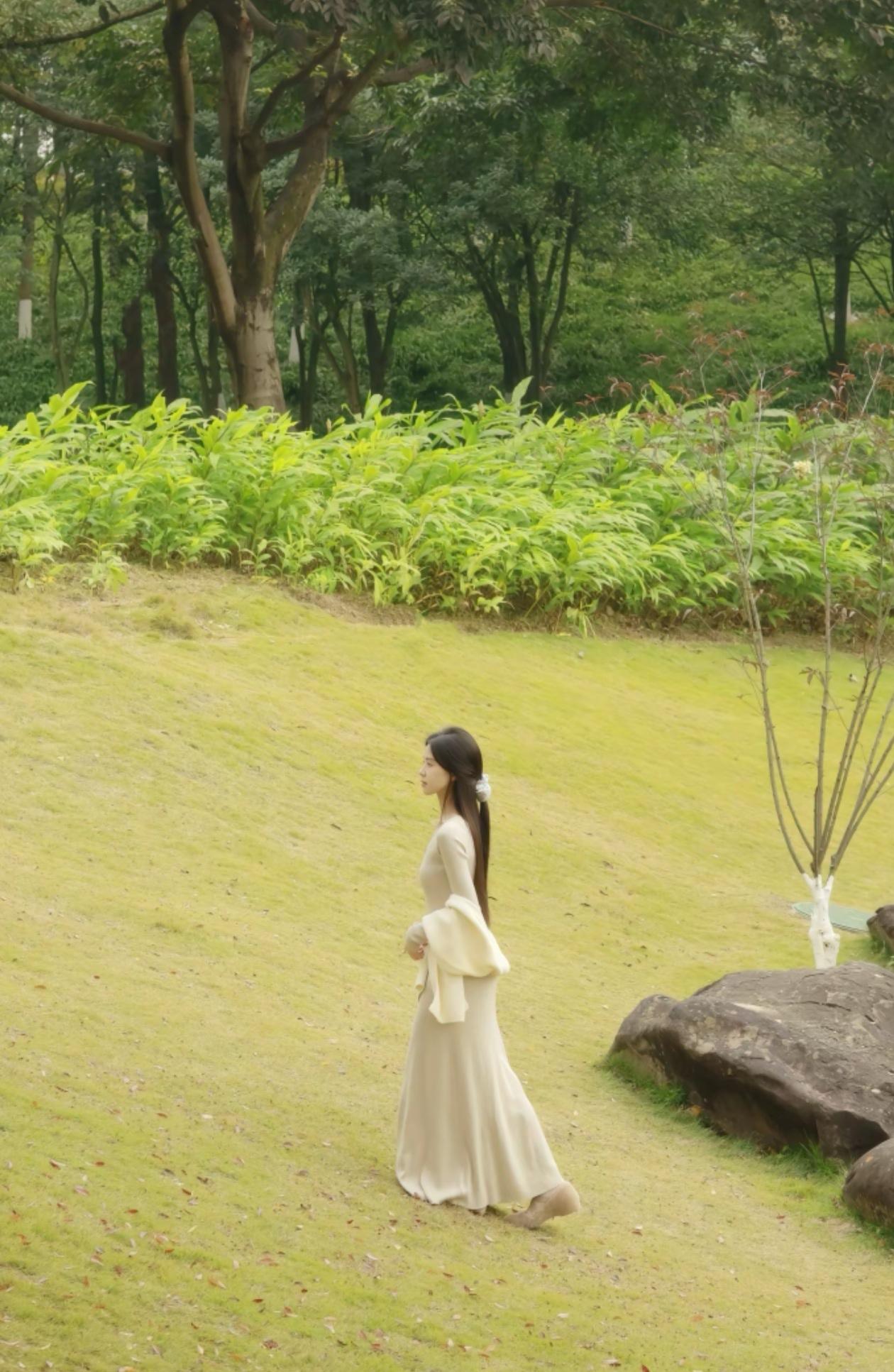 阳光洒落,微风轻拂,优雅漫步在绿意盎然的公园中。