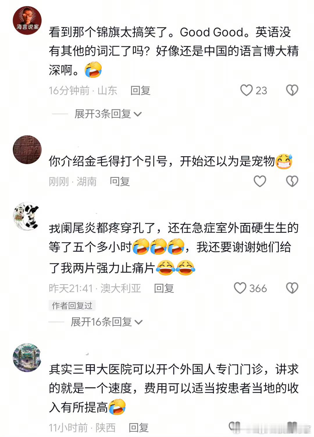 其实还挺烦他们抢占中国人的医疗资源的……能不能让外国人看病10倍收费啊在英国痛了