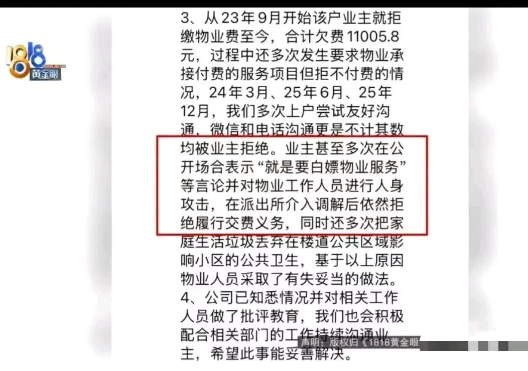 浙江杭州,男子把垃圾扔到楼下,回家发现垃圾被人扔回家门口,男子选择报案,结果发现是物业干的!物业:“业主长期拒缴物业费,还多次在公开场合表示“就是要白嫖物业服务”,并对物业工作人员进行人身攻击。”男子:我不交物业费,是你扔垃圾的理由吗? 男子把垃圾扔到楼下,结果回家一看,竟然垃圾又被“神奇”地扔回了家门口。你以为这是哪个“神操作”事件?不不不,这背后隐藏的,远比你想象的更深、更令人唏嘘。 事情的真相令人震惊——原来,扔垃圾的“幕后黑手”,竟然是物业!这不是电影情节,也不是某个荒诞剧的桥段,而是真实发生在我们身边的“物业大战”。物业的理由令人愤怒又心酸:他们指责业主长期拒缴物业费,还在公开场合声称“就是要白嫖物业服务”,甚至对物业工作人员进行人身攻击。换句话说,物业把“怨气”发泄到最底层的业主身上,用扔垃圾这种“低级”手段进行报复。 可是,这一切的核心问题究竟在哪里?难道只是一场“物业和业主”的矛盾?不,这远远不是。它折射出的是一种深层次的社会现象:我们对“公平”的追求,对“尊重”的渴望,以及在利益与责任之间的博弈。物业的“报复”行为,暴露出一个令人心碎的事实——在一些地方,服务与责任的边界变得模糊,利益的天平被扭曲,人与人之间的信任被逐渐侵蚀。 更令人深思的是,男子的回应:“我不交物业费,是你扔垃圾的理由吗?”这句话犹如一面镜子,映照出很多业主的心声:他们不愿意成为“被剥削”的对象,但又被各种“霸王条款”和“暗箱操作”所困扰。我们是否也曾在生活中遇到过类似的“被动”?在利益的天平上,谁才是真正的“受害者”?谁又该承担起责任? 这场“垃圾事件”,看似琐碎,却折射出社会的一个缩影:当我们面对不公与冲突时,选择的态度决定了未来的走向。是继续沉默忍让,还是勇敢发声,追求公平?这不仅仅是一个关于物业和业主的故事,更是我们每个人都应该深思的问题。 所以,朋友们,你怎么看?你是否也遇到过类似的“扔垃圾事件”?你又是如何应对的?在这个充满矛盾和冲突的社会,我们更需要的是理性与正义的声音。毕竟,只有当我们共同努力,才能让“公平”不再是一句空话,让“尊重”成为每个人的底线。垃圾扔进垃圾箱 邻居扔垃圾