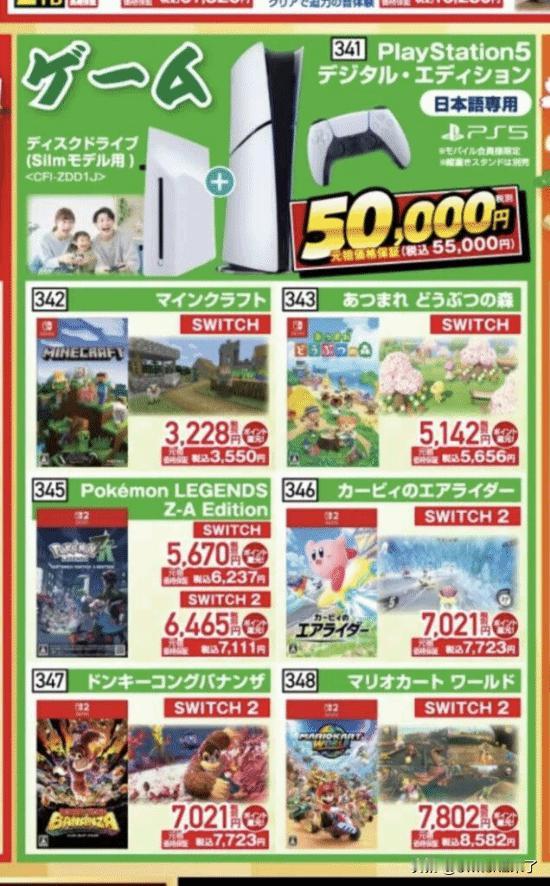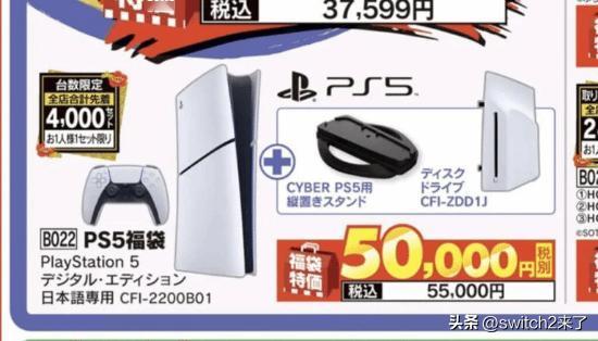 【说好的要涨价呢?】据日本媒体报道,1月2日起,日本多家主流家电卖场针对PlayStation 5推出了极具诱惑力的优惠套装,价格甚至逼近了2023-2024年全球大涨价之前的水平。 本次促销的主角是2025年11月刚刚在日本上市的新型PS5数字版(型号:CFI-2200B01)。该型号被称为“日本专供版”,官方零售价为55,000日元(含税)。 在知名连锁卖场Yamada Denki,玩家只需支付原价55,000日元,即可获得原本需另购的“外置光驱(售价11,980日元)”以及“CYBER竖置支架(售价990日元)”。这意味着玩家变相节省了约1.3万日元。该套装全日本限量4,000套。 要知道,在11月之前,自带光驱的标准版PS5售价曾一度高达79,980日元。这次促销让PS5的入手门槛大幅降低,对于坚持购买实体版游戏的玩家来说,这无疑是近两年来的最佳购机时机。