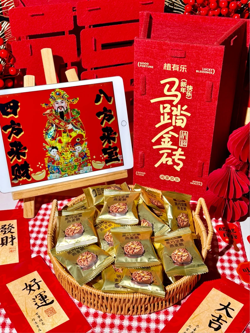 植有乐这款“马踏金砖”燕麦脆礼盒,直接把年味和财气拉满~