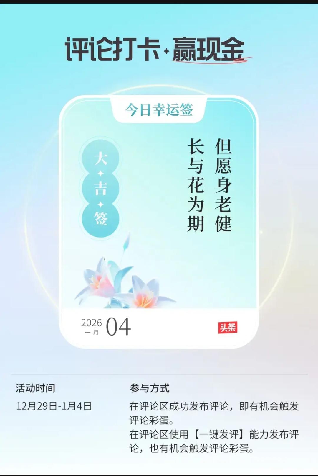 但愿身老健,长与花为期 同事发过来一篇文章,我问她:“这是在职的涨工资吧?退休的今年还涨吗?” 2026年已然开启,新的一年里,退休人员又开始期盼着涨工资啦。说起退休人员涨工资,今年会不会迎来22连涨啊? 先看看大家的评论吧: “历年养老金上调比例,2016年是转折点,看出点什么了吗?” “2026年应该又是一个转折点吧,希望能一路上升。” “按照目前的情况,只能越来越少。” 有人预测:“2026年1.5%,2027年1.2%,2028年1.0%……” “给大家一种快要停止上涨的预期” “这才哪到哪,还有大把的负上调空间等在后面呢” “如果能支持国家备战,保证国家人民安全,作一点小小奉献,还是可以的” 从当前释放的多重信号来看2026年养老金继续上涨的“盼头”十足,且这份乐观并非空穴来风。人社部 多场工作总结会传递的核心信息显示,社保基金运行态势稳健,为养老金上调筑牢了“资金底盘”。 今年还涨不涨?涨多少?看看豆包给的答案:“2026年养老金22连涨基本确定,全国总体涨幅预计2%左右(区间1.5%—2.5%),调整框架仍为定额+挂钩+倾斜,执行时间大概率在2026年5—7月各地落地,无需个人申请。” 有人说:“只要身体建康,每个人每年都相当于多了十万收入,开心快乐每一天!”今日幸运签正合适,“但愿身老健,长与花为期”,还是希望大家身体能够健康长寿,每年都能像花一样盛开,与花共度美好时光吧! 顿悟随笔