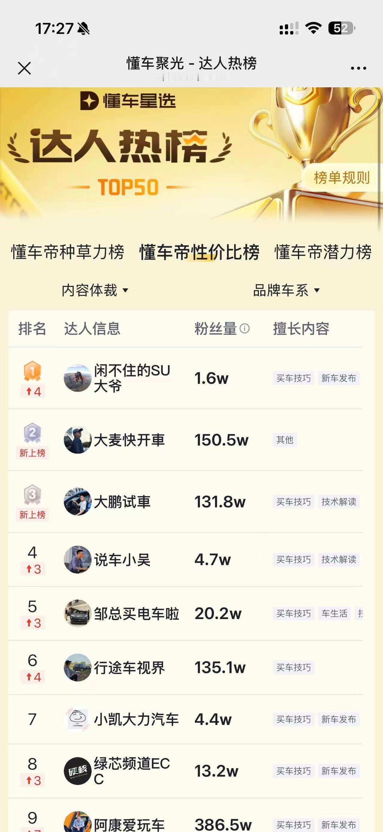 26年第一个工作日,又是新的开始。25年年末-在懂车帝,刷到了种草力榜第一,和很多粉丝多很多的大号排在一起,还有性价比榜单前列(性价比好像不是一个褒义词?)-在B站,终于来到10w粉丝,可以有小电视了。但是26年在内容层面,面临更大的挑战。如何平衡内容的深度和广度?今年其实做了一些相对深度和晦涩的内容。比如9月初「英飞凌车载功率模块全家福」这期,在视频号和B站,甚至抖音上有不少专业人士的互动,甚至拿了个中国电源学会的科普作品奖,但是播放数据算不上太亮眼,内容传播也算不上出圈。这是26年前两个月要思考的问题。新能源大牛说