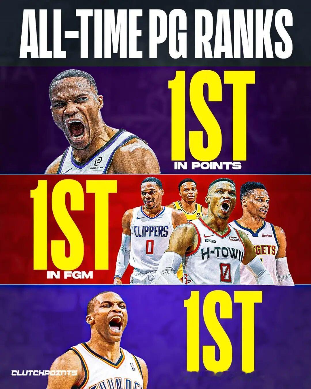 威少目前的总分是26711分! 排在历史第15,也是控卫第一! 威少目前的生涯总数据排名一览: 总得分,控卫第一 总进球,控卫第一 总篮板,控卫第一 总助攻,控卫第六 总盖帽,控卫第三 总抢断,控卫第七 总得分、总篮板、总进球全部第一! 数据层面,可能是历史最疯狂的控卫! 而且威少也拿过得分王+MVP! 问题来了,你们觉得! 威少是NBA历史第几控卫?