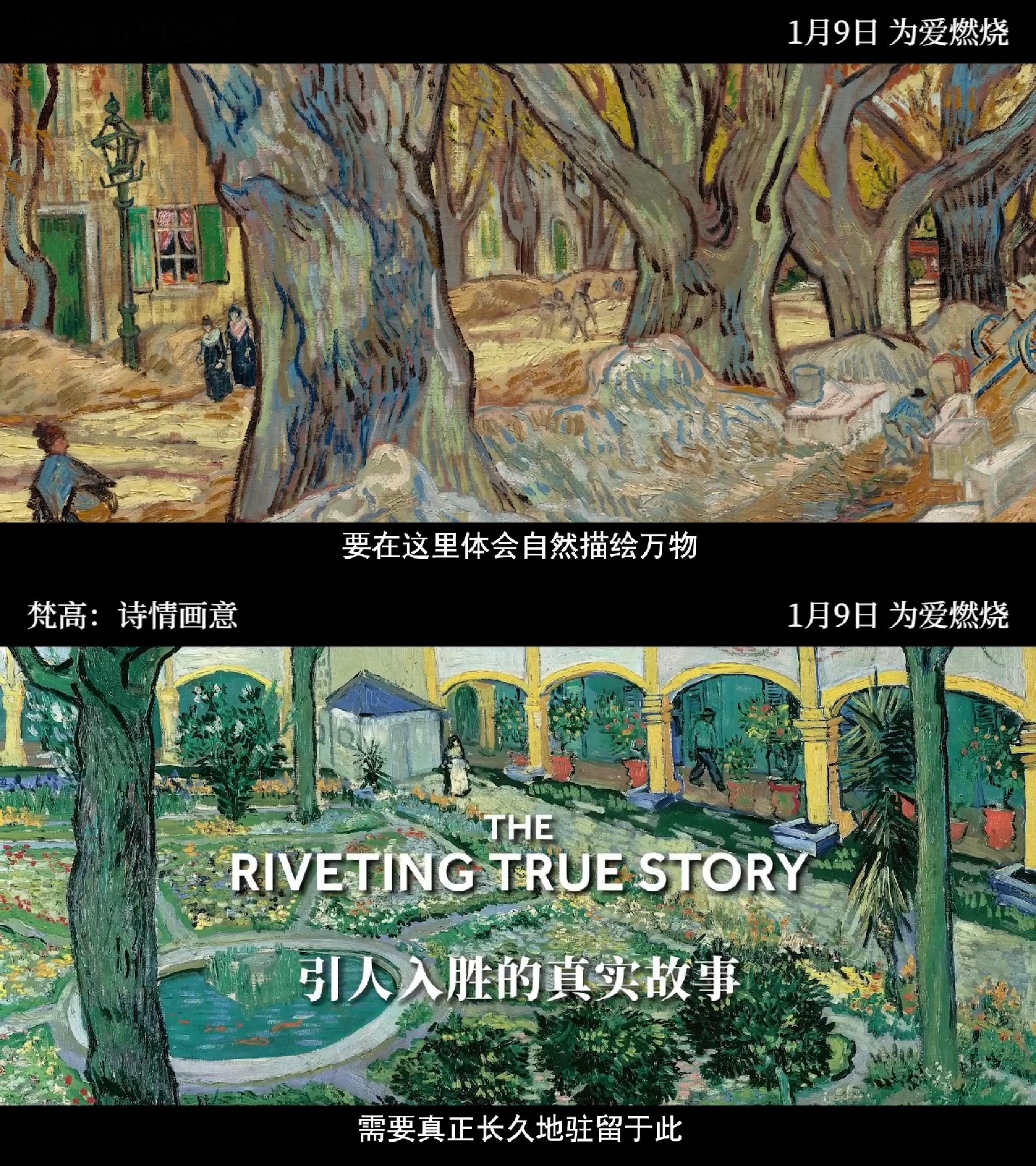 艺术爱好者千万不要错过的新年影片梵高诗情画意!谁懂在一堆跨年档商业片中看到纪录片《梵高:诗情画意》的救赎感!推荐所有美术生、艺术生、策展人、艺术爱好者去看!!不同于生平梳理式的纪录片,这部影片将讲述重点放到了梵高绘画风格转变的时期,他来到巴黎追随印象派,再离开巴黎去往法国南部探索新的绘画风格,在实验色彩与笔触的魔法间,这位“绘画疯子”终于将艺术之车驶向了现代主义。更难得的是,影片讲述了当时“绘画作为装饰”这一观念对梵高绘画的影响,他从作品在空间的排列、与墙面颜色的呼应等角度来思考作品中具体的色彩,以及作品之间的搭配...可以说梵高是带着策展的意识雏形在丰富和完美自己的绘画。1月9日,不要错过在书本上难得看到的艺术故事!